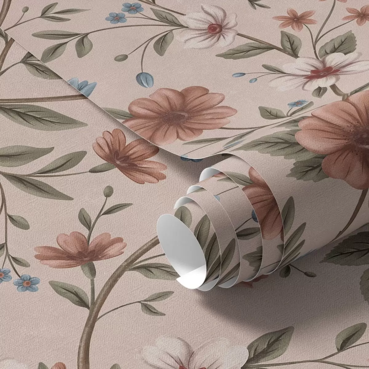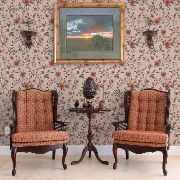 Papel pintado Flores y follaje de color rosa coral sobre fondo rosa empolvado Nr. a00667