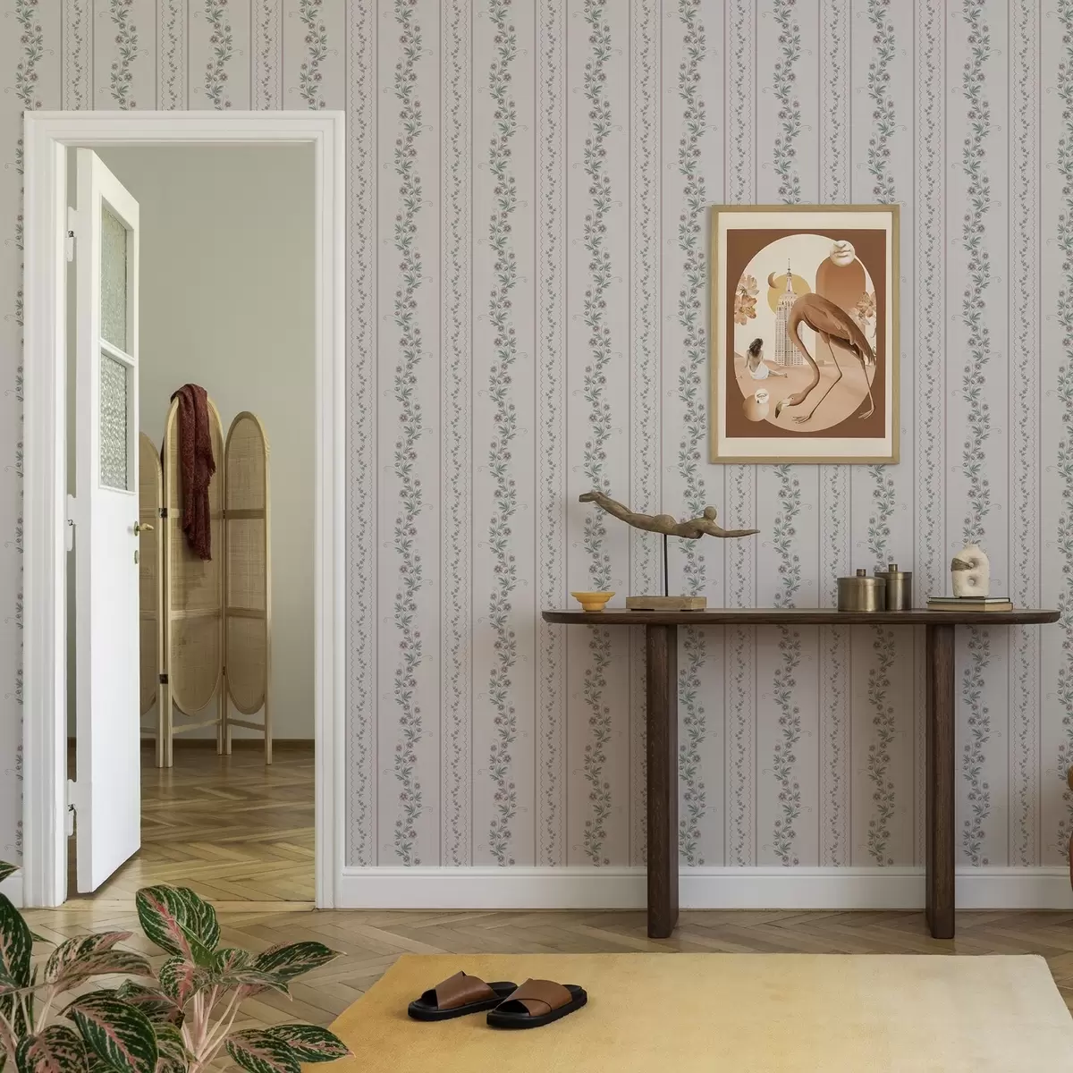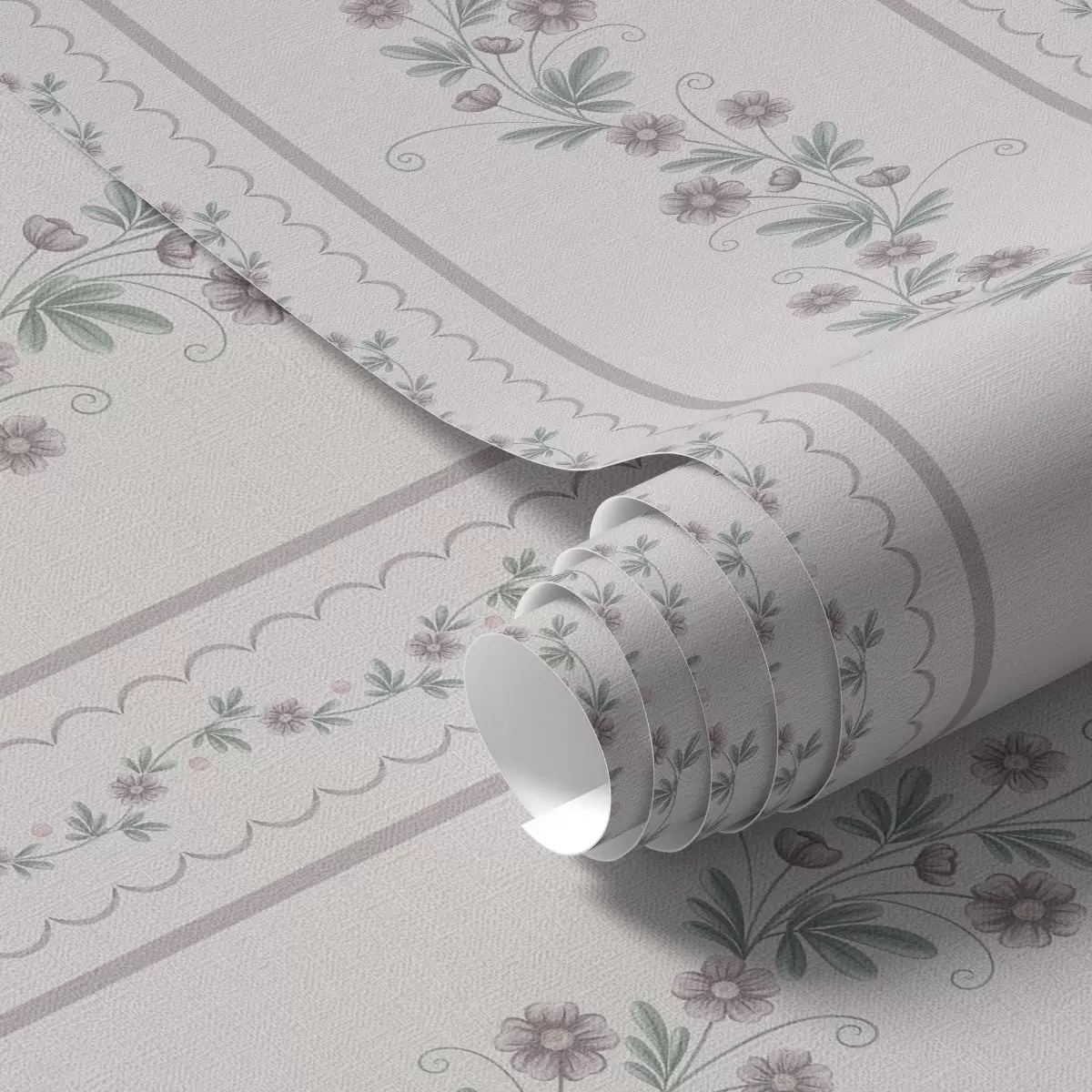 Papel pintado Delicadas rayas con flores de lavanda, estilo vintage Nr. a00671