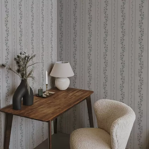 Papel pintado Delicadas rayas con flores de lavanda, estilo vintage Nr. a00671