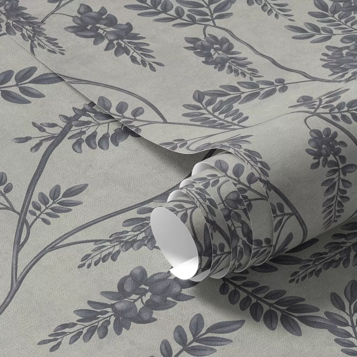 Papel pintado Ramas con flores oscuras sobre un fondo gris-beige Nr. a00672