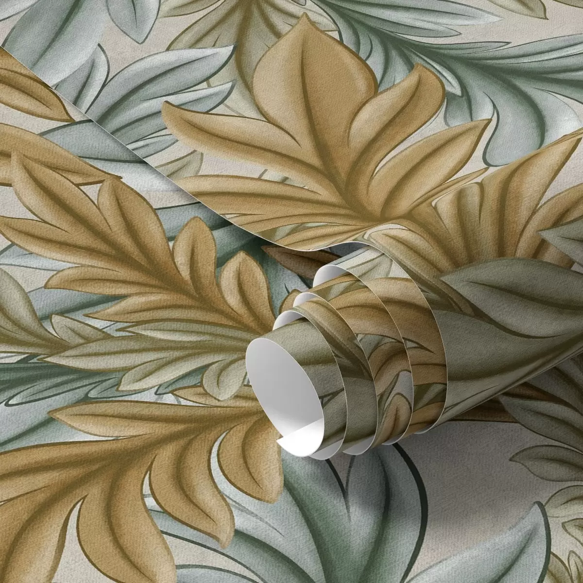 Papel pintado Follaje decorativo en una cálida paleta de colores ocres y verdes Nr. a00673