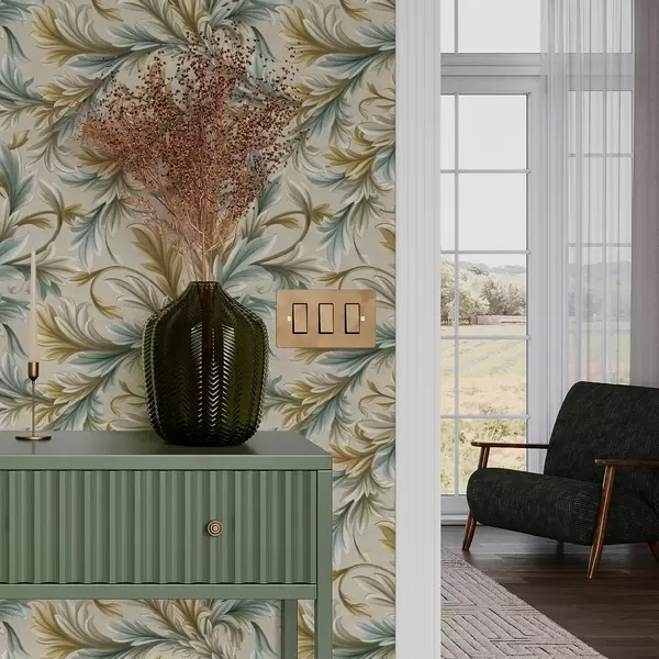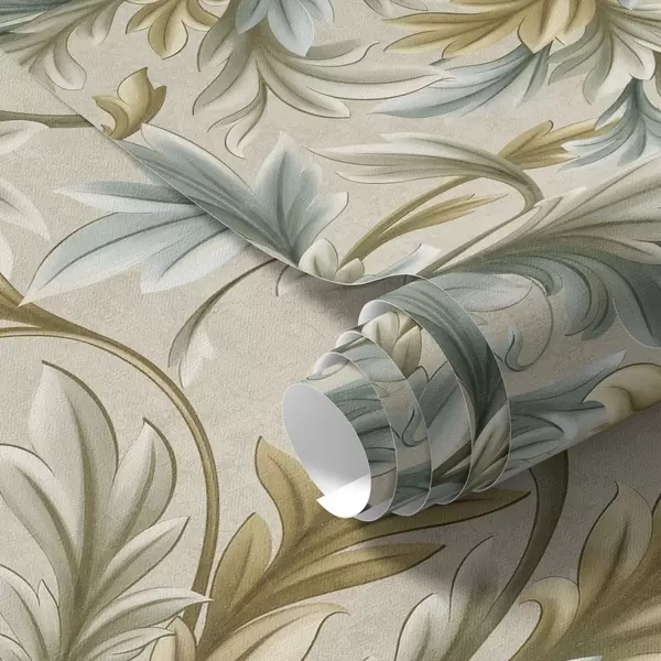 Papel pintado Hojas voluminosas en tonos pastel de verde y beige Nr. a00674