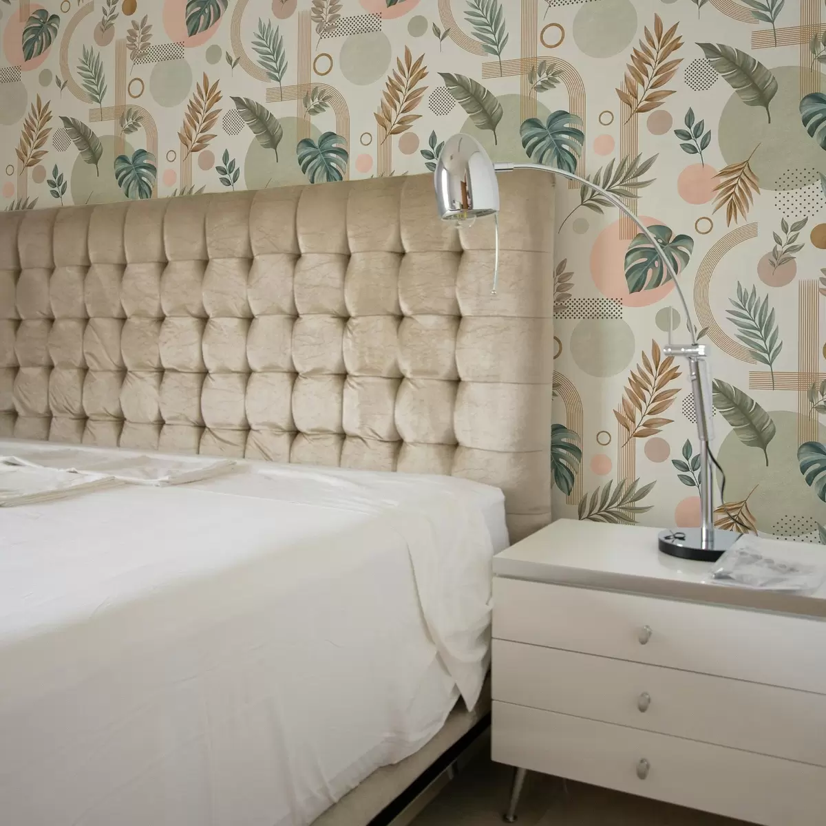 Papel pintado Hojas y formas geométricas en tonos cálidos y tranquilos Nr. a00677