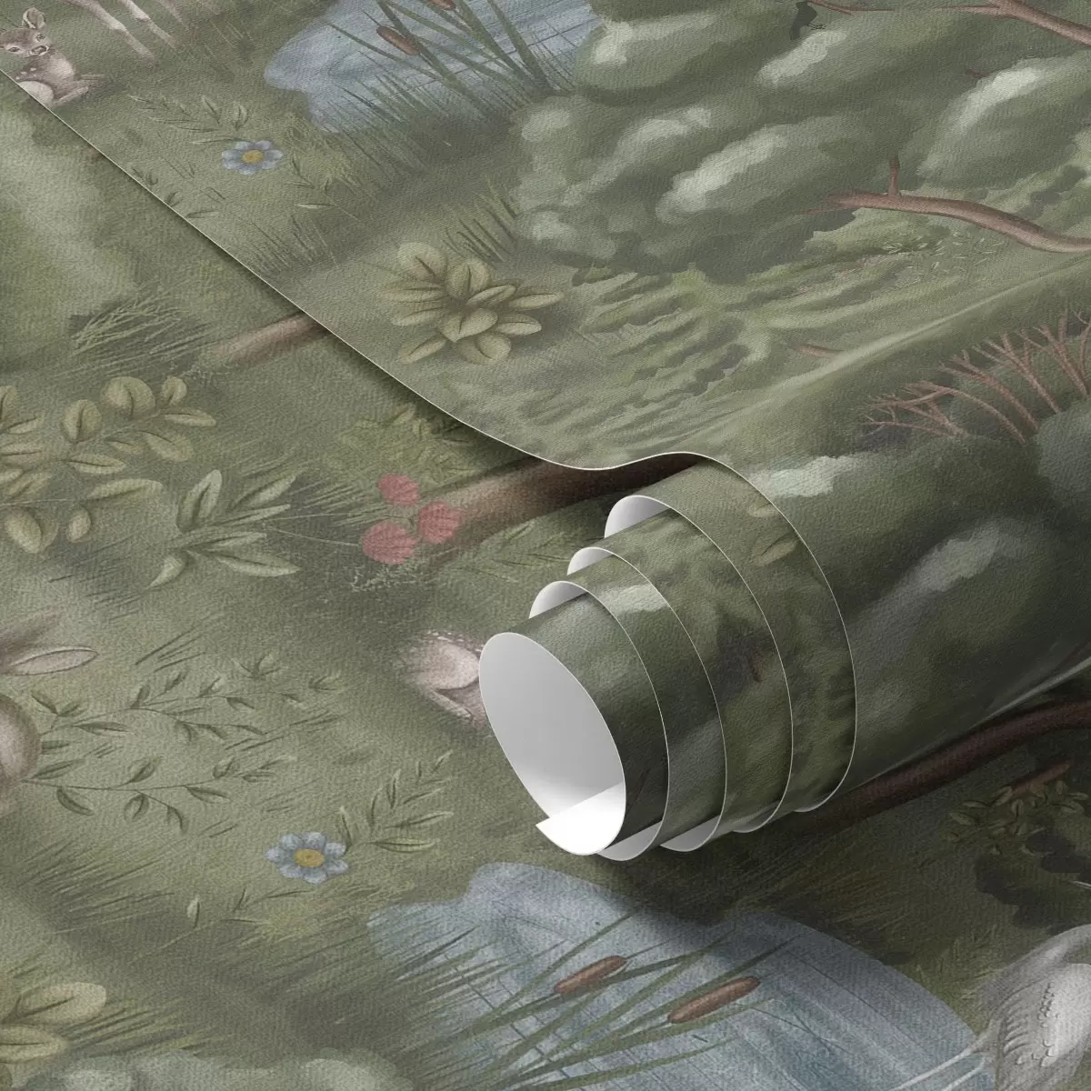 Papel pintado Claro del bosque con cervatillos, conejos y garzas Nr. a00680