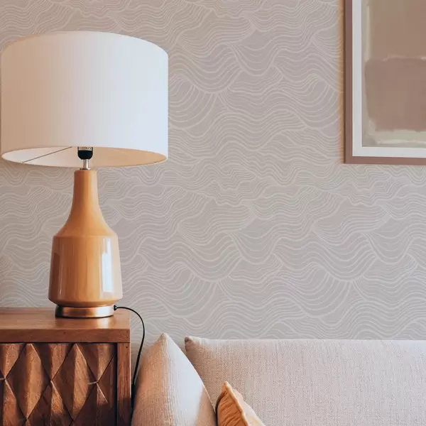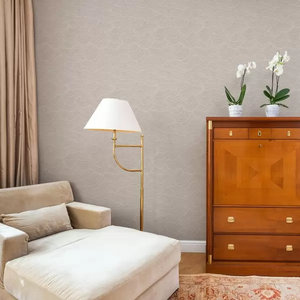Papel pintado Líneas onduladas tono sobre tono en beige cálido Nr. a00681v1