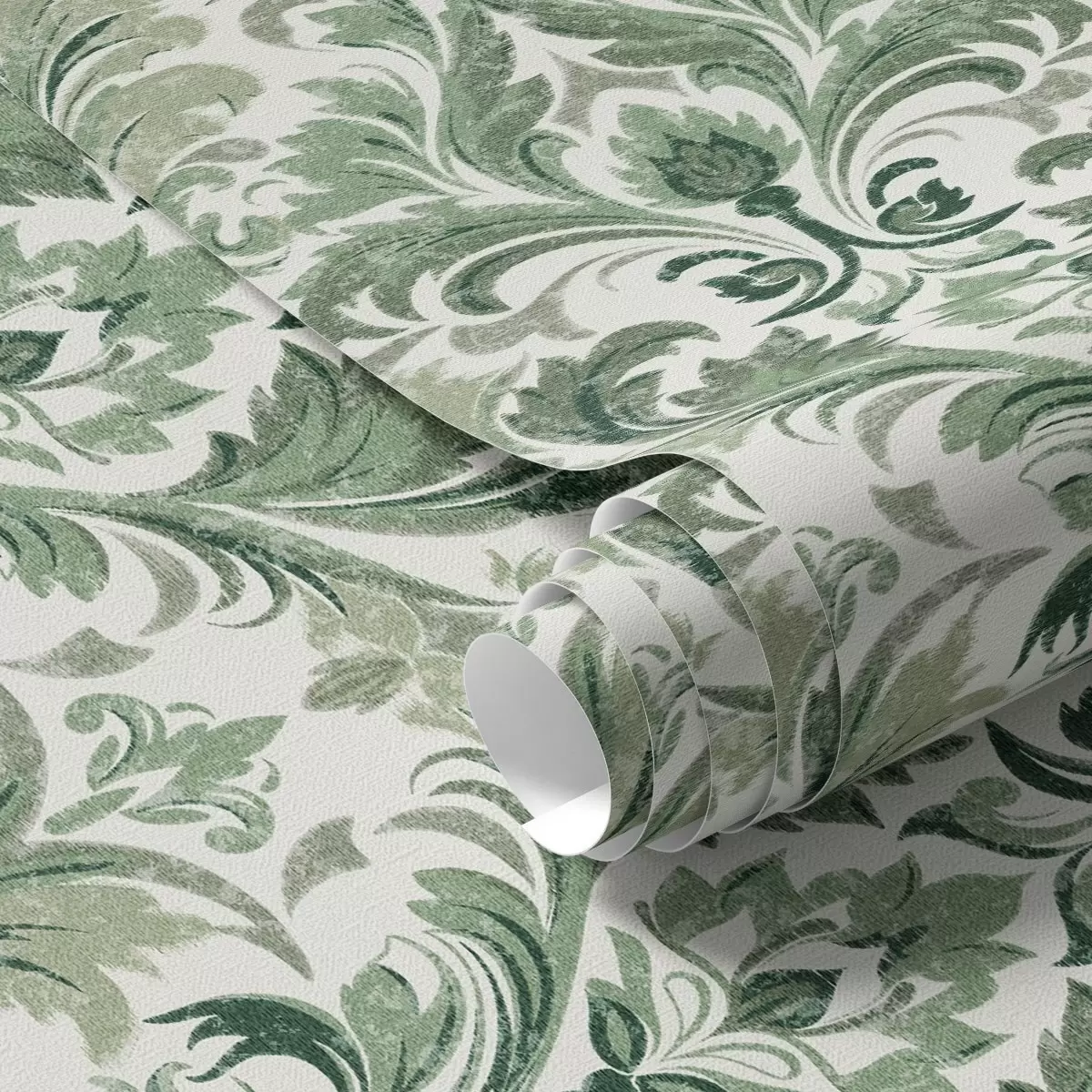 Papel pintado Damasco verde con textura en relieve sobre fondo claro Nr. a00692