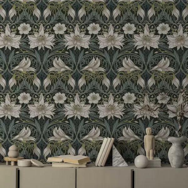 Papel pintado Composición Art Nouveau con lirios sobre fondo oscuro Nr. a00696