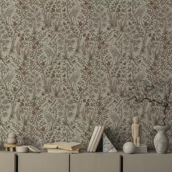 Papel pintado Aves entre granados en un entorno natural Nr. a00699
