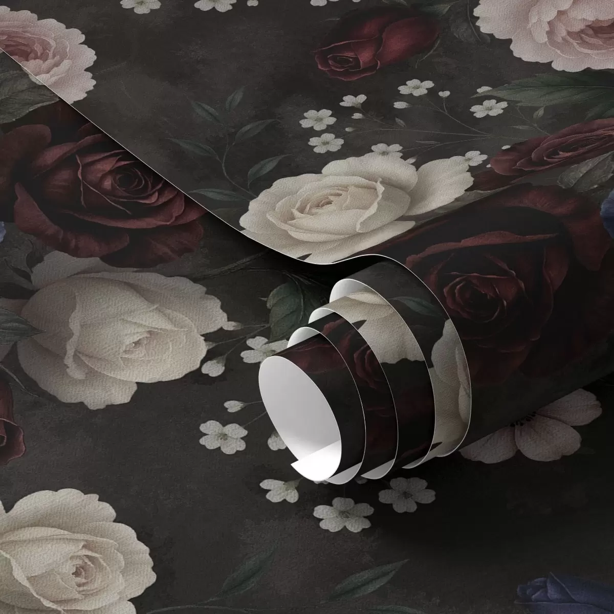 Papel pintado Rosas oscuras, anémonas y peonías sobre un fondo intenso Nr. a00704