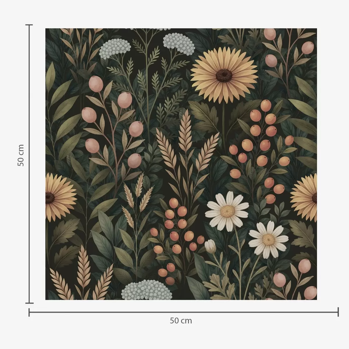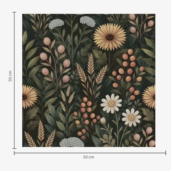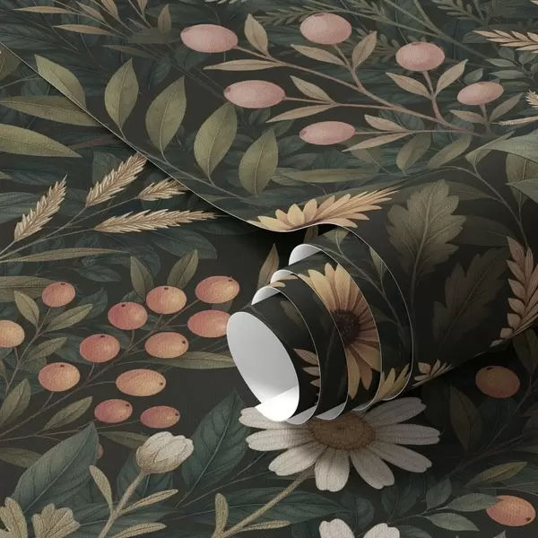 Papel pintado Flores silvestres y bayas sobre fondo oscuro, adorno natural Nr. a00707