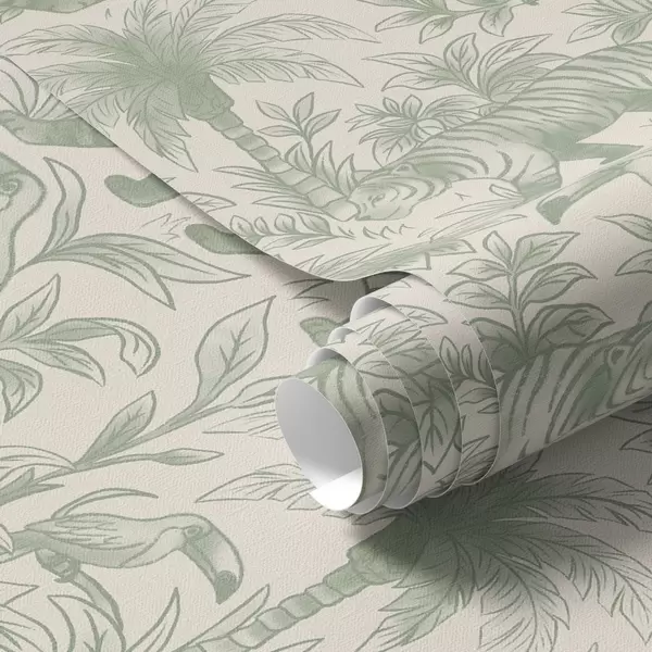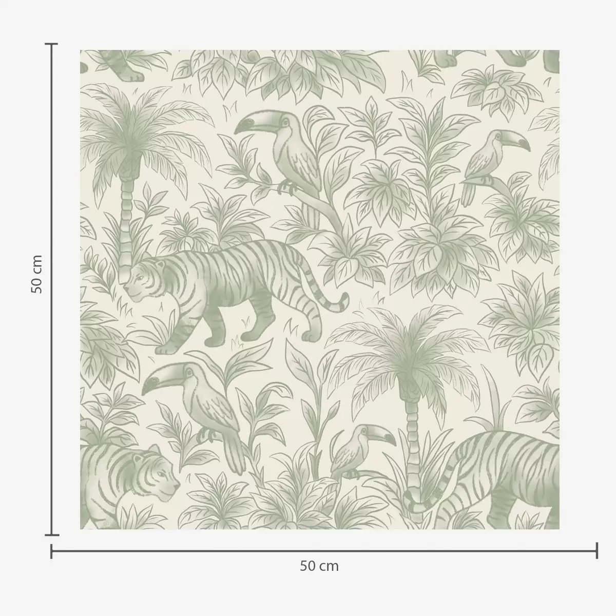 Papel pintado Tigres y aves tropicales entre palmeras sobre un fondo claro Nr. a00711