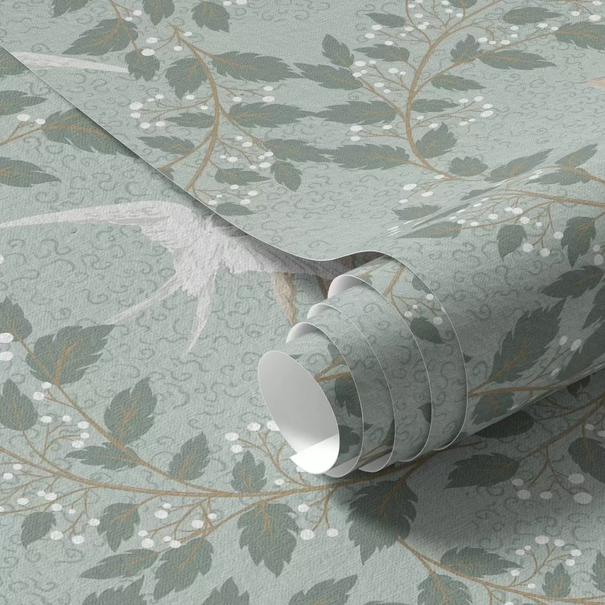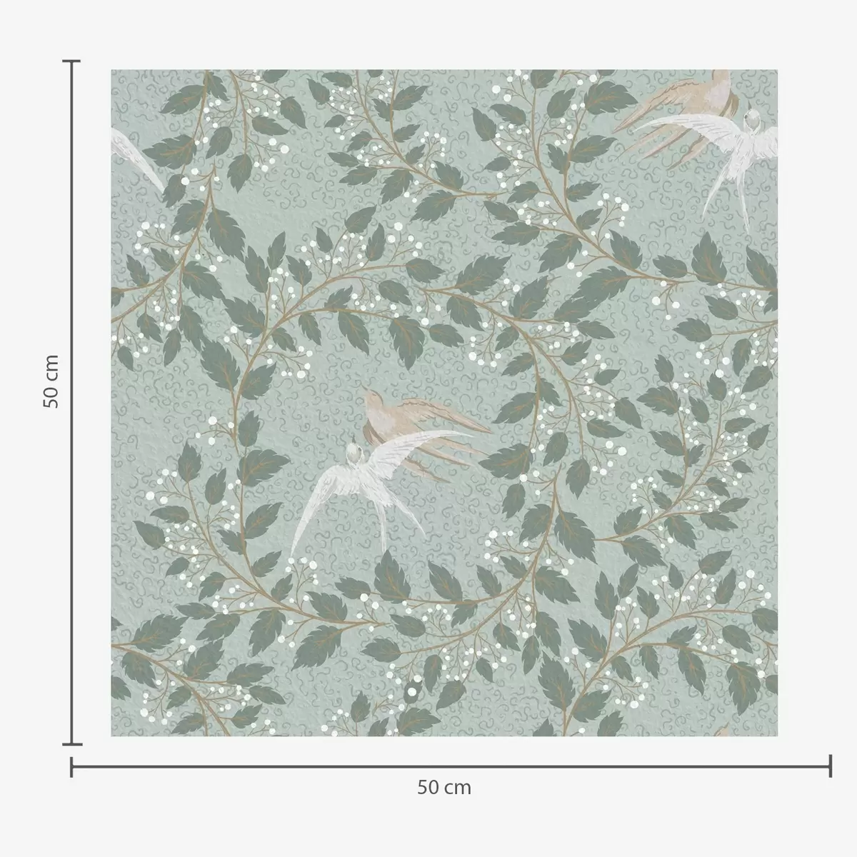 Papel pintado Ramas con bayas blancas y pájaros sobre fondo verde Nr. a00731