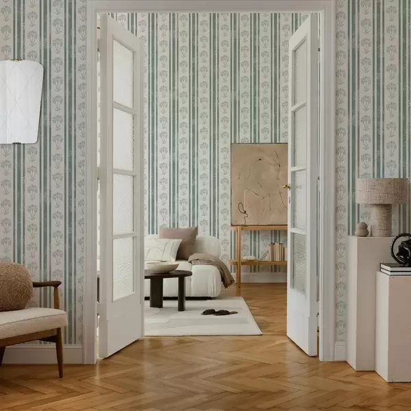 Papel pintado Patrón de cinta con flores en tonos verdes Nr. a00732