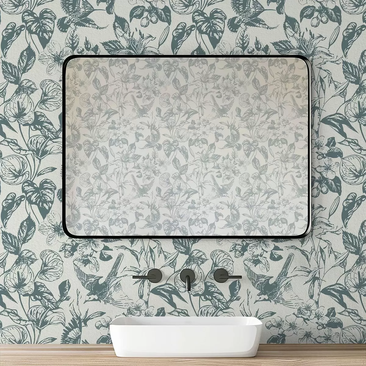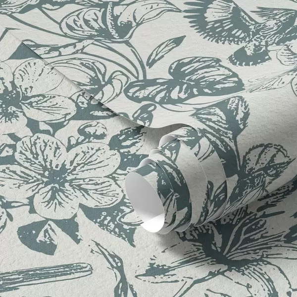 Papel pintado Adorno floral monocromático con pájaros Nr. a00737