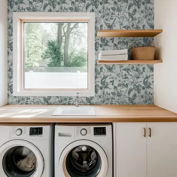 Papel pintado Adorno floral monocromático con pájaros Nr. a00737