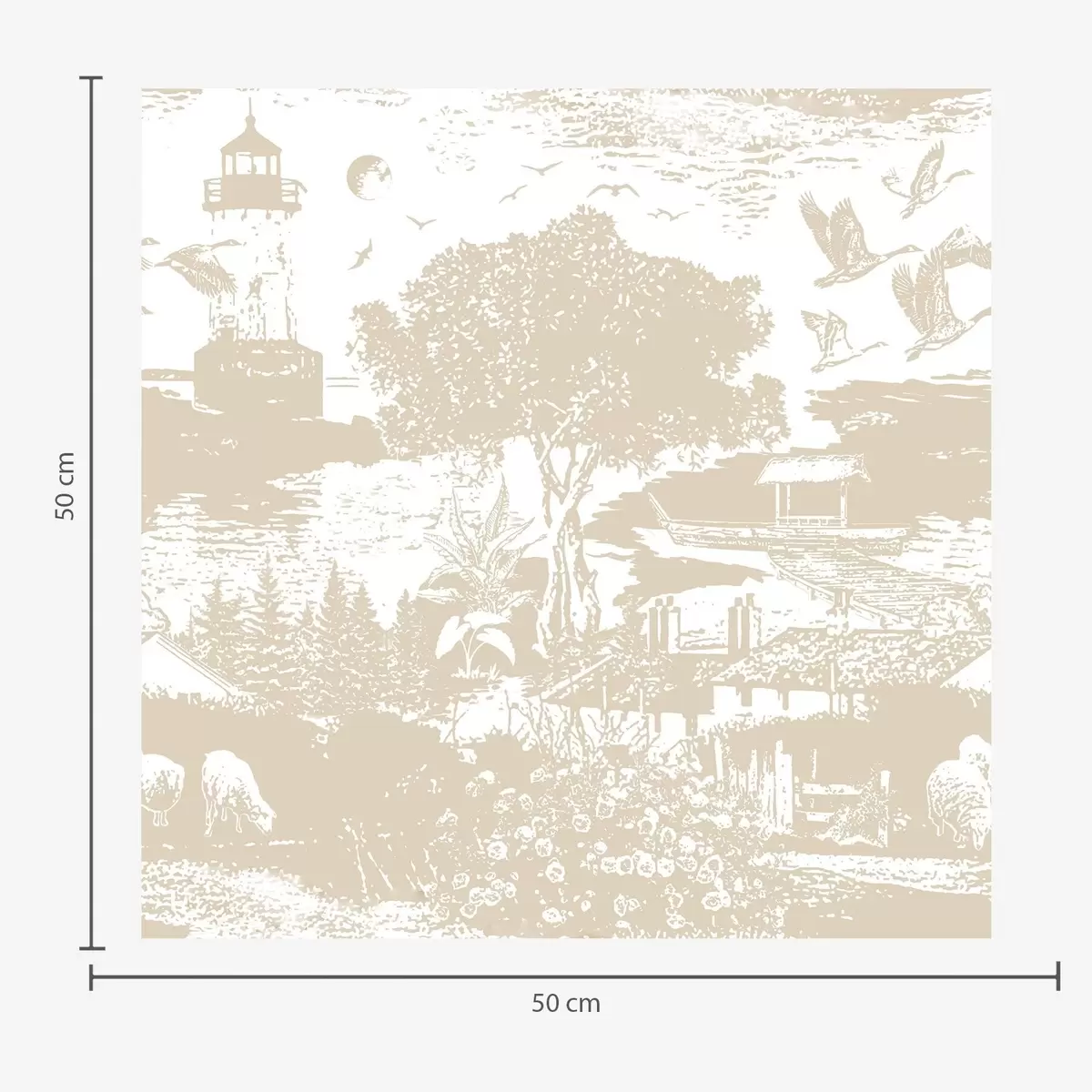 Papel pintado Escena con faro, árboles y casas en siena Nr. a00739