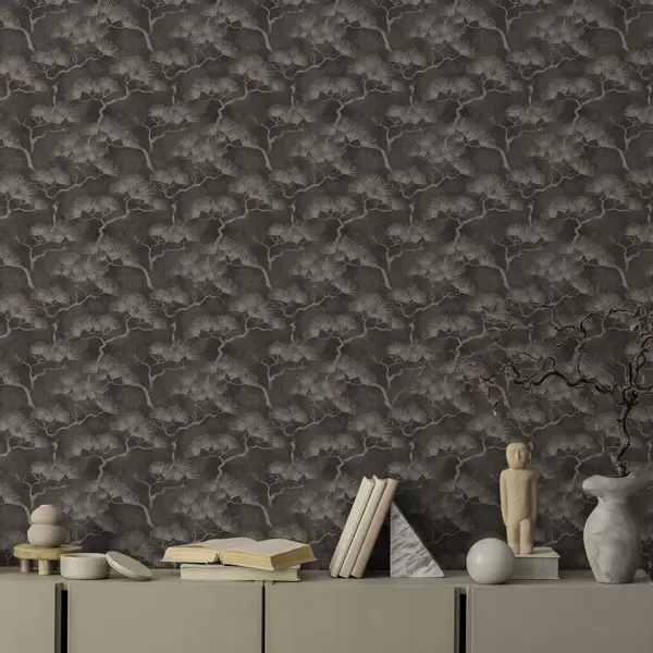 Papel pintado Siluetas de pinos sobre fondo oscuro, textura brumosa Nr. a00742