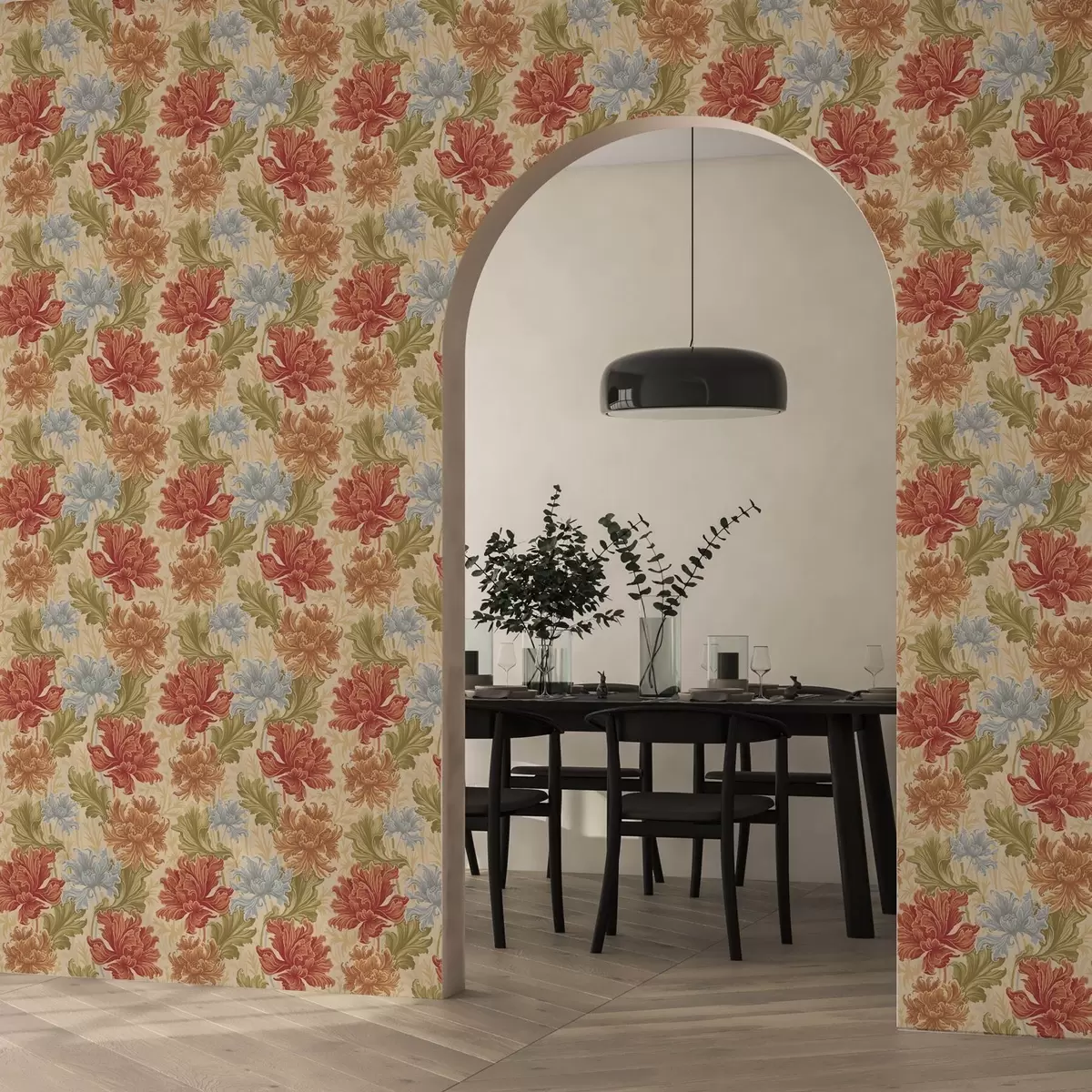 Papel pintado Grandes crisantemos en tonos cálidos sobre fondo beige Nr. a00743