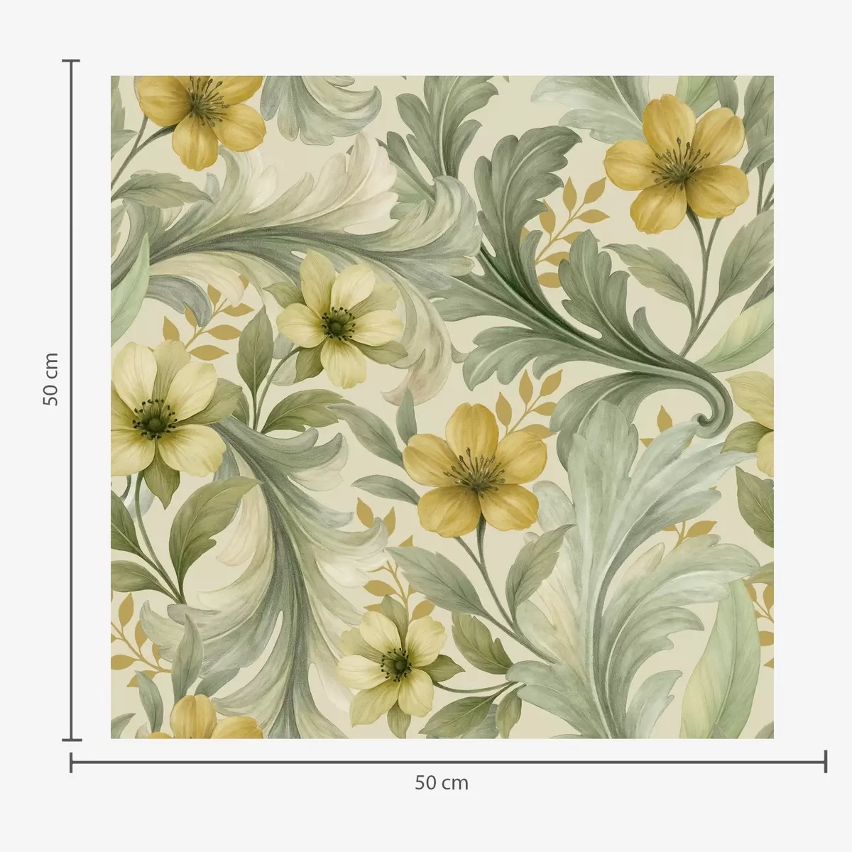 Papel pintado Volutas de acanto con flores en tonos verdes y amarillos Nr. a00749
