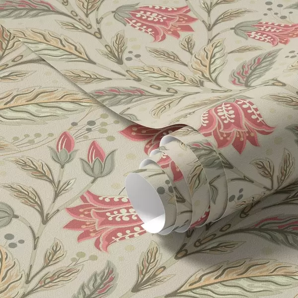 Papel pintado Pequeñas flores con forma de campana en tonos rosa y verde Nr. a00760
