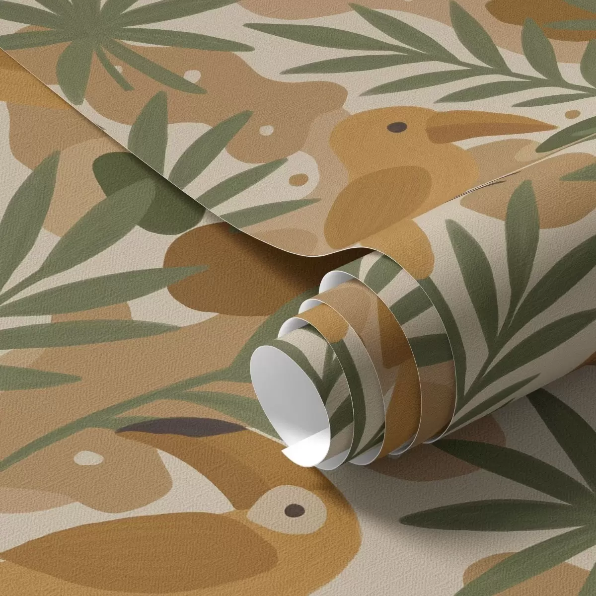 Papel pintado Tucanes estilizados entre hojas de palmera Nr. a00762