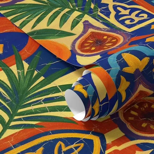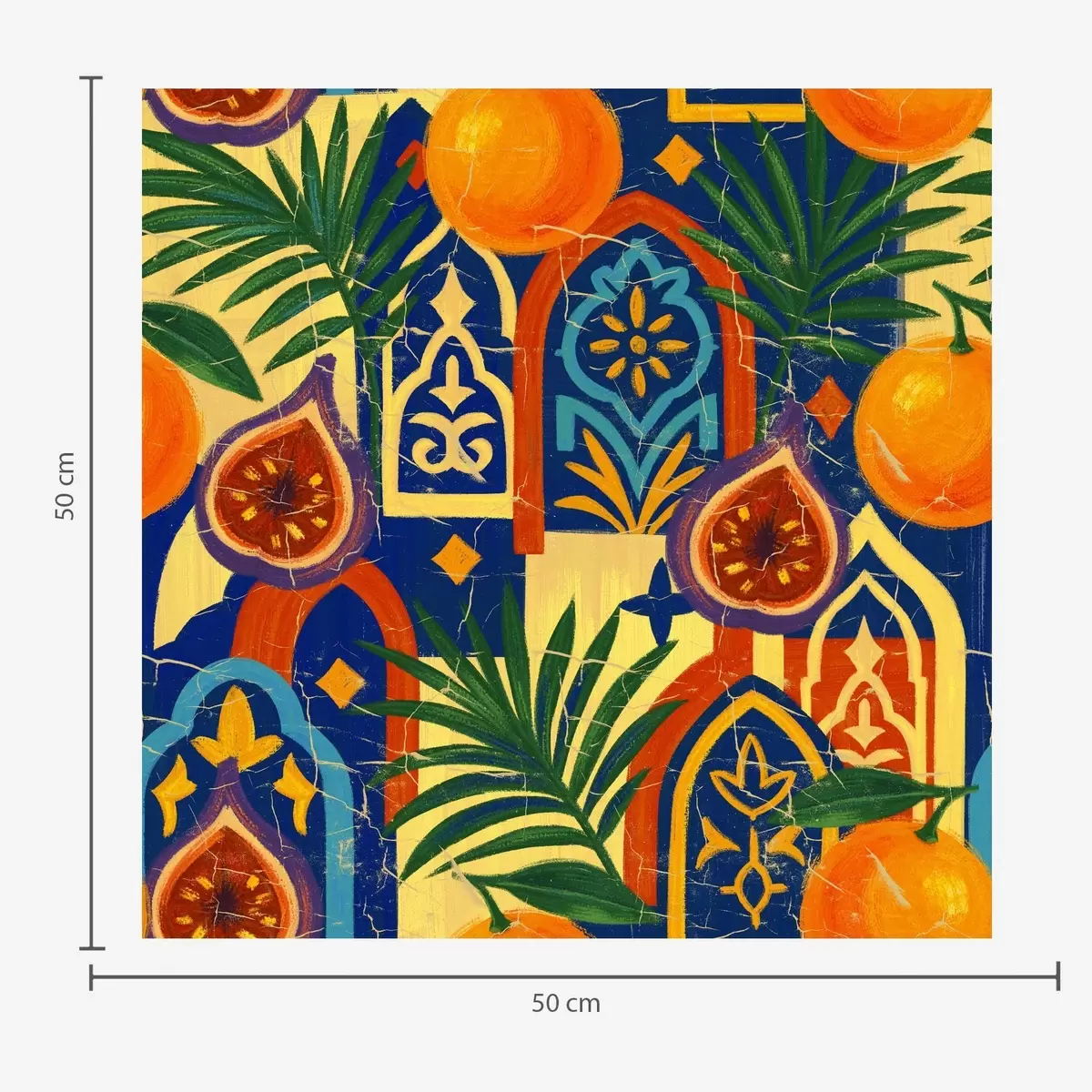 Papel pintado Naranjas brillantes, hojas de palmera y arcos marroquíes Nr. a00767