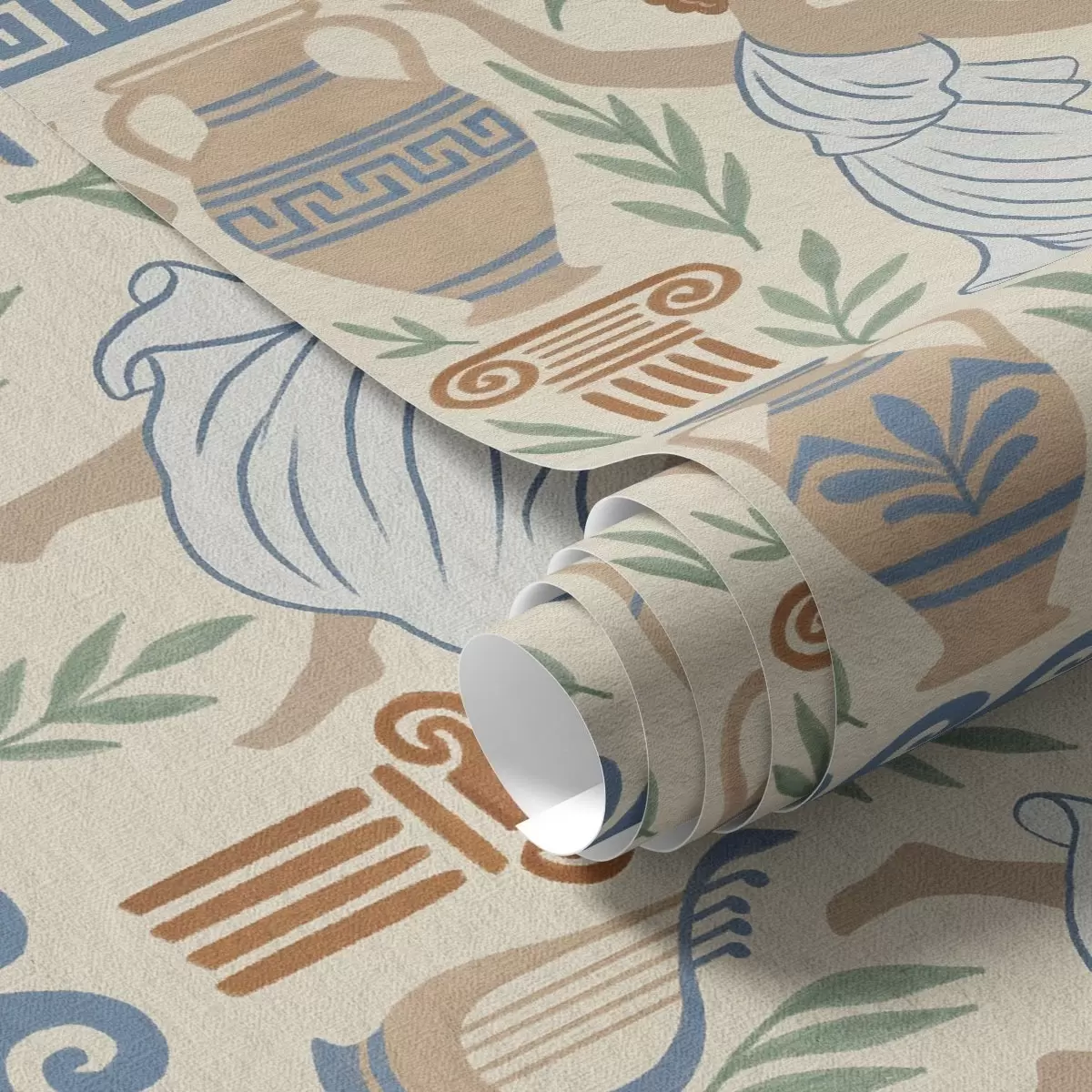 Papel pintado Adorno griego antiguo con figuras, jarrones y columnas Nr. a00768