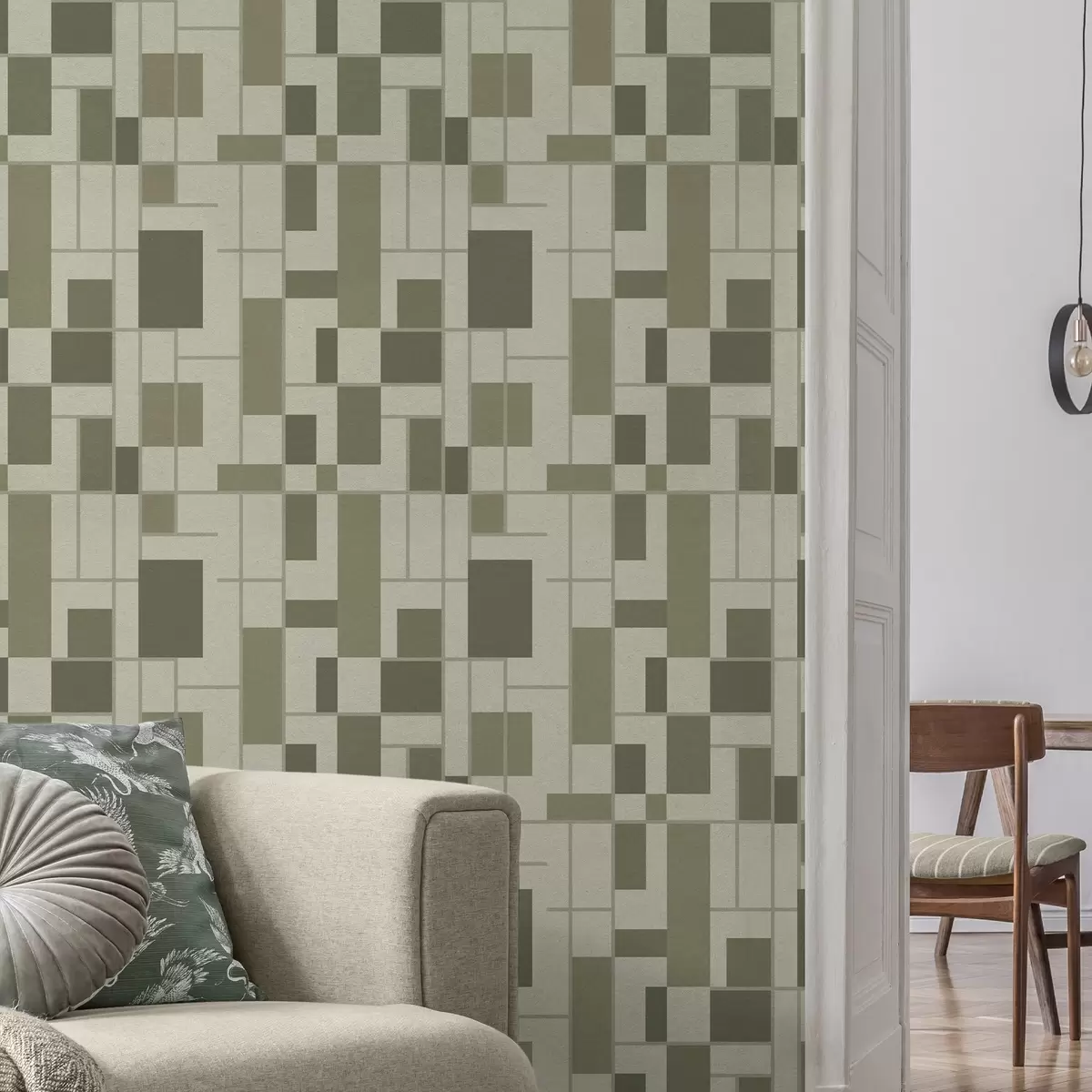 Papel pintado Patrón geométrico en tonos verdes Nr. a00769