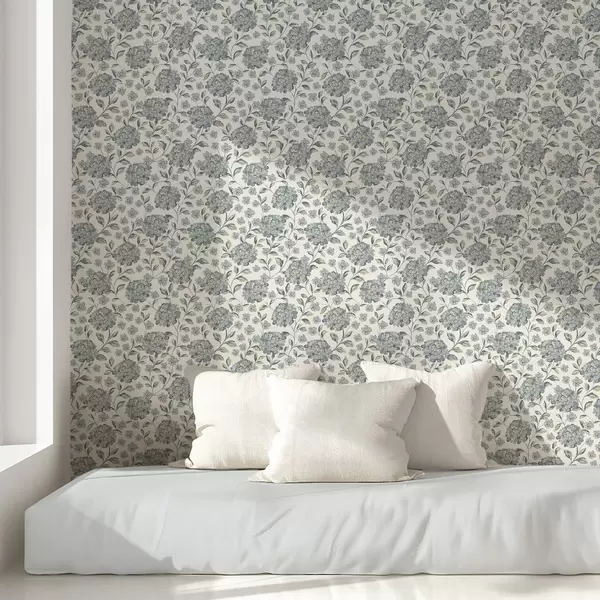 Papel pintado Flores y hojas frondosas en una paleta de colores gris azulados. Nr. a00778