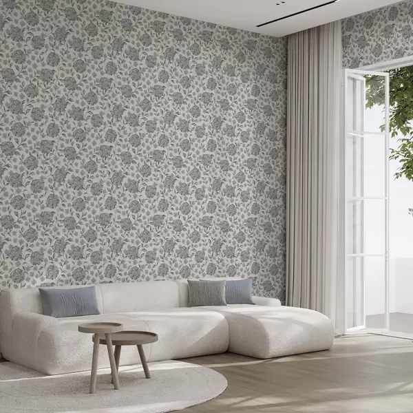 Papel pintado Flores y hojas frondosas en una paleta de colores gris azulados. Nr. a00778