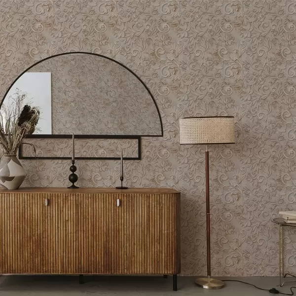 Papel pintado Relieve en piedra con volutas florales, beige vintage Nr. a00784