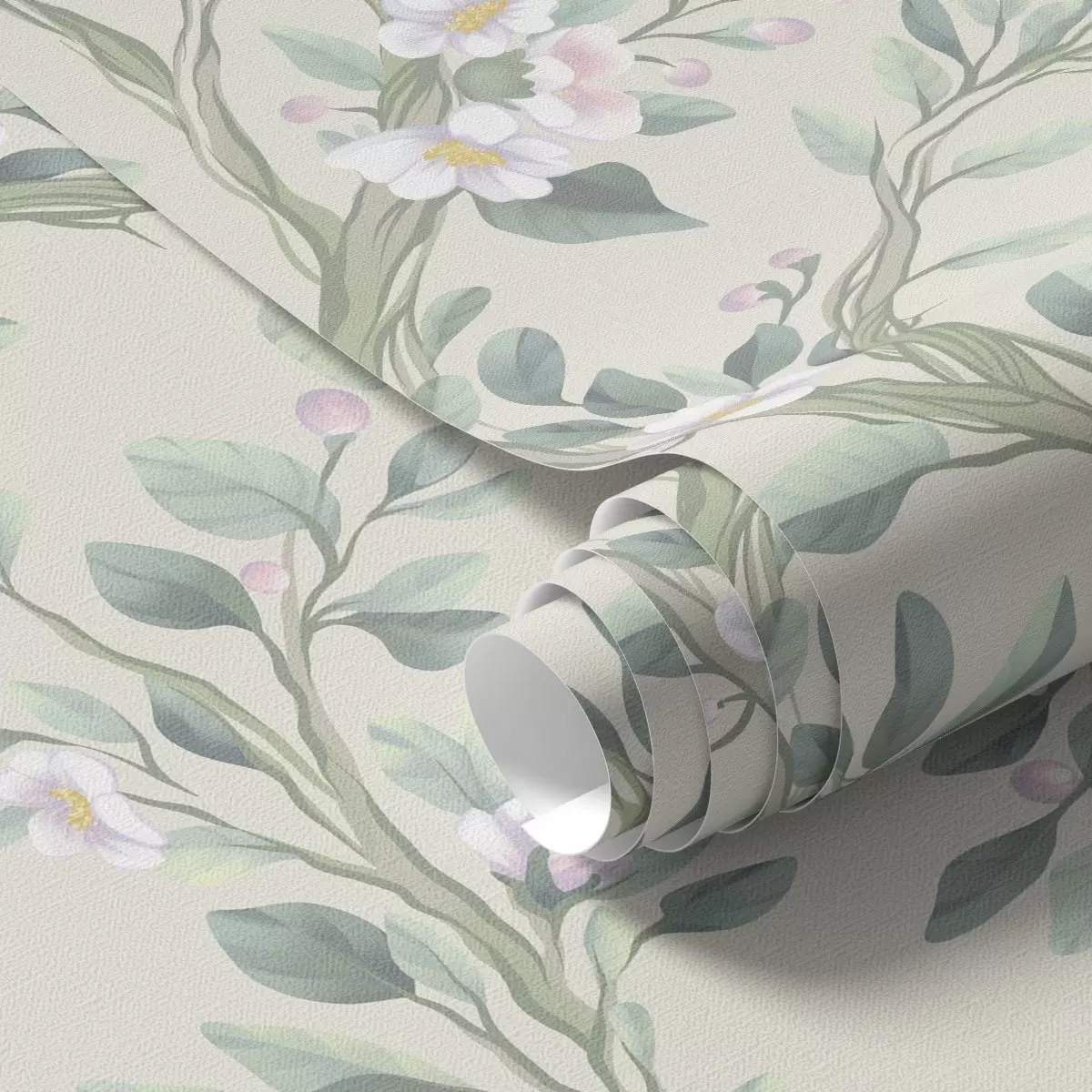 Papel pintado Delicadas ramas en flor sobre fondo crema, colores pastel Nr. a00793