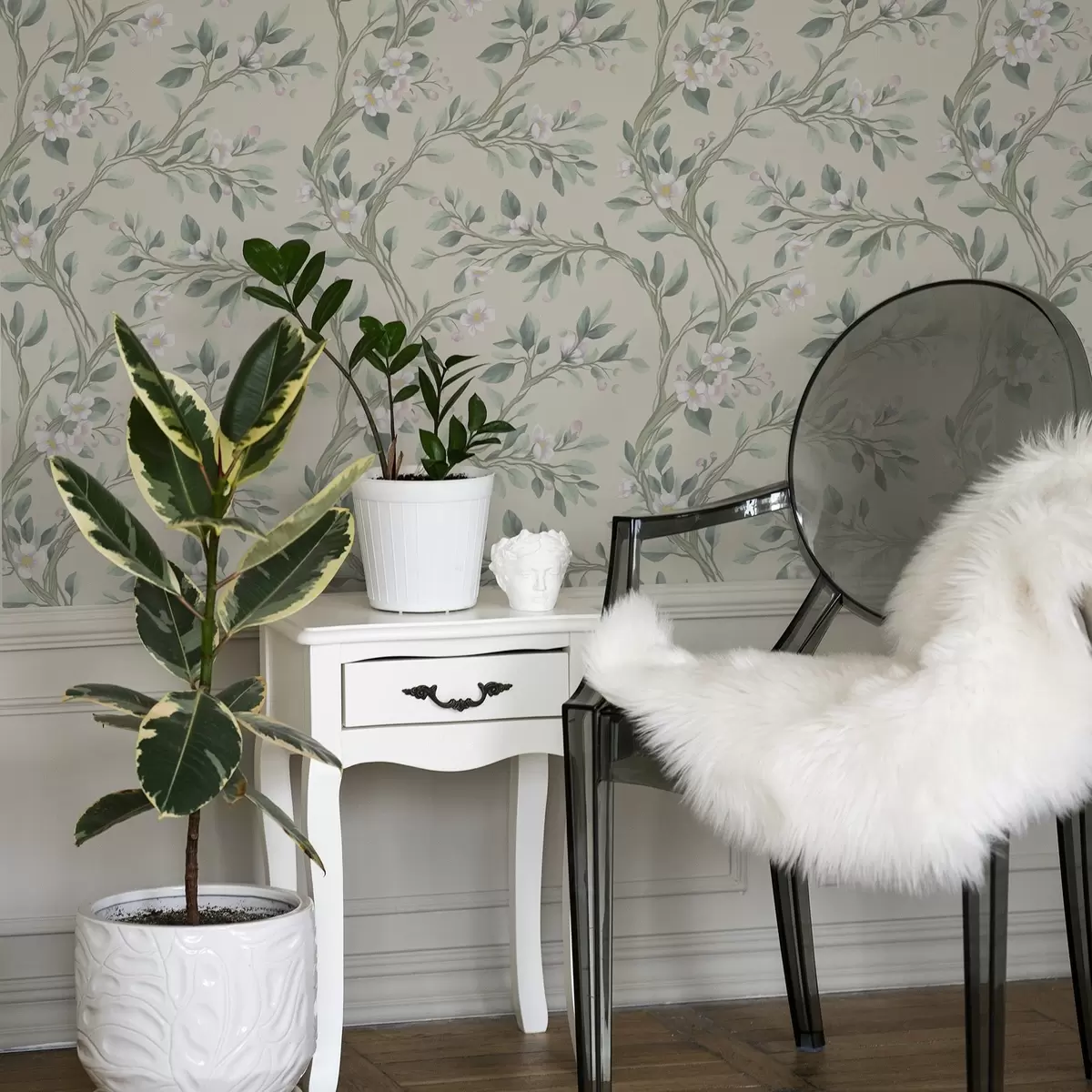 Papel pintado Delicadas ramas en flor sobre fondo crema, colores pastel Nr. a00793