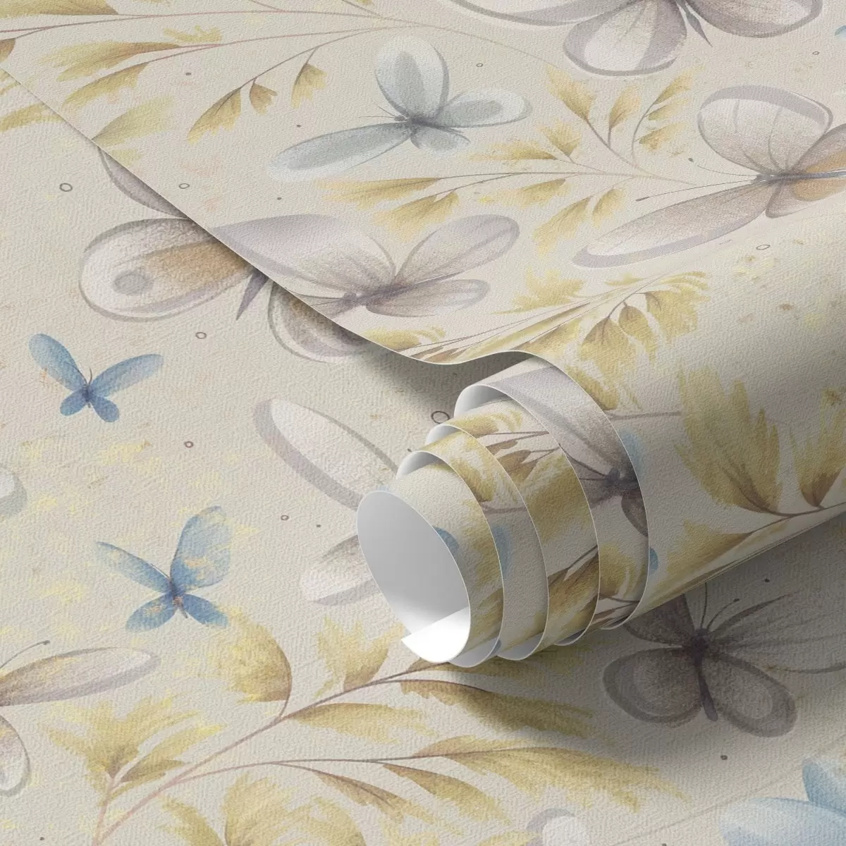 Papel pintado Mariposas ligeras entre hojas doradas sobre un fondo claro Nr. a00795