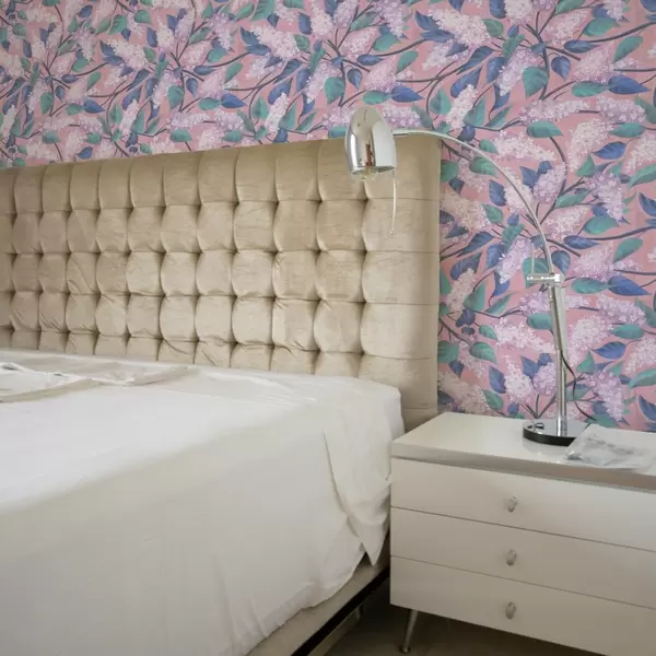Papel pintado Delicadas flores lilas sobre fondo rosa, ambiente primaveral Nr. a00797