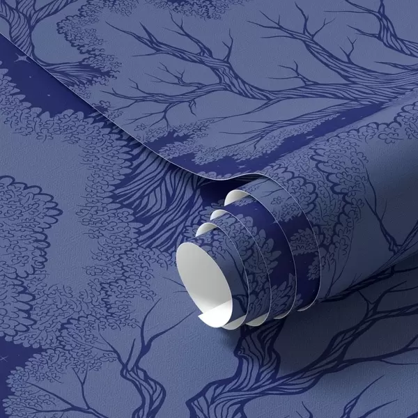 Papel pintado Siluetas de árboles bajo un cielo estrellado en tonos azules Nr. a00798