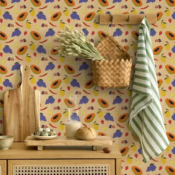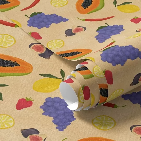 Papel pintado Papaya, cítricos y bayas sobre un fondo cálido y rico Nr. a00803v1