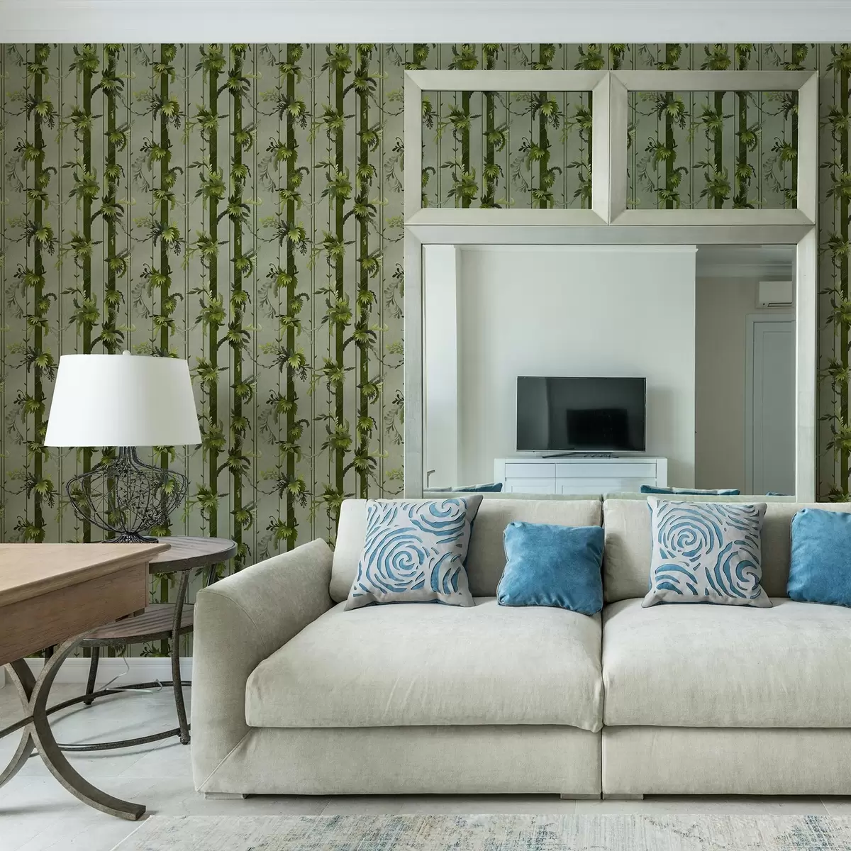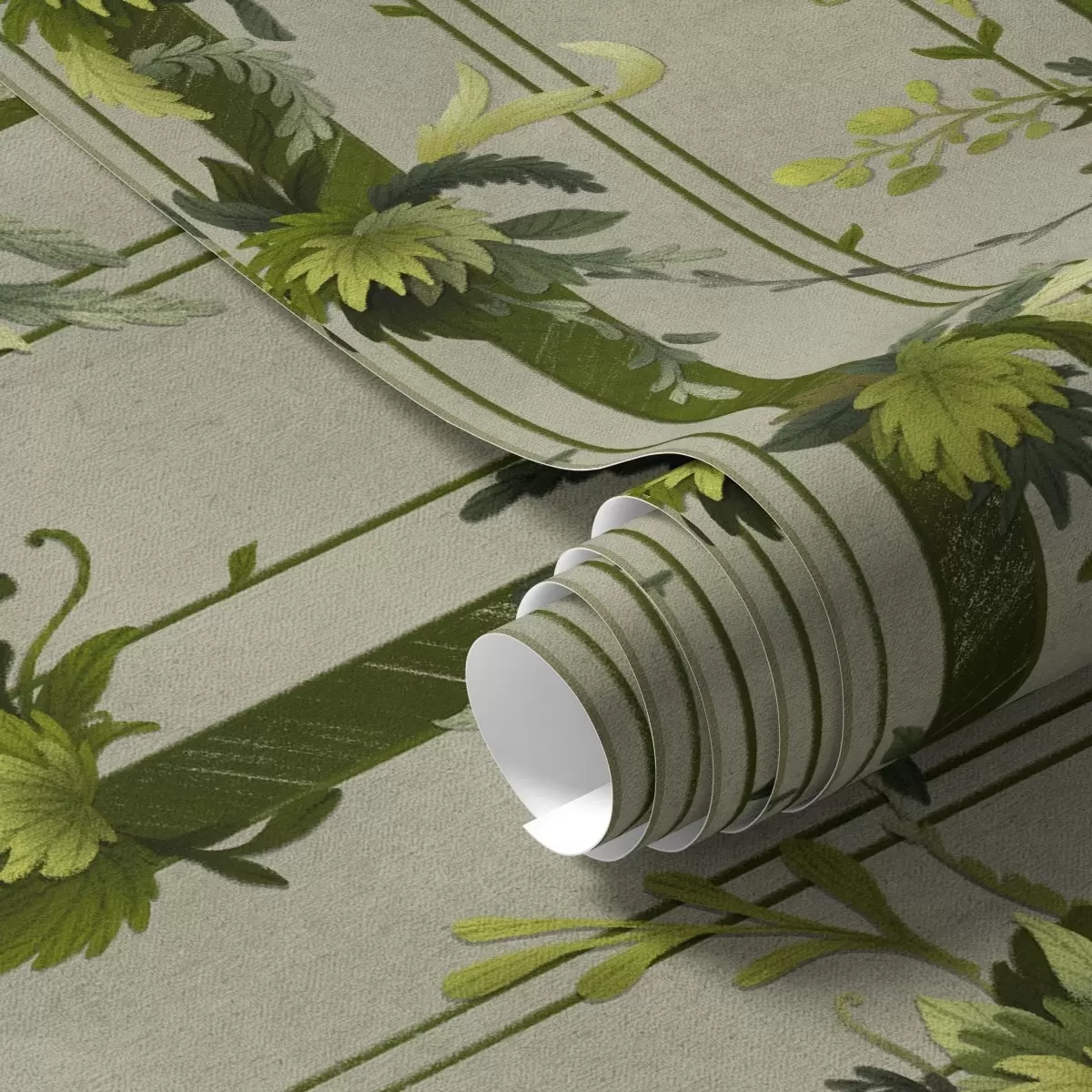 Papel pintado Hojas verdes en rayas verticales sobre fondo gris Nr. a00807v1