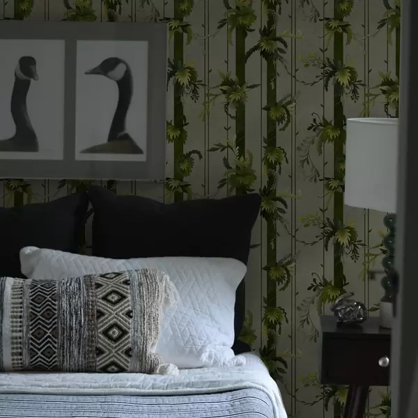 Papel pintado Hojas verdes en rayas verticales sobre fondo gris Nr. a00807v1