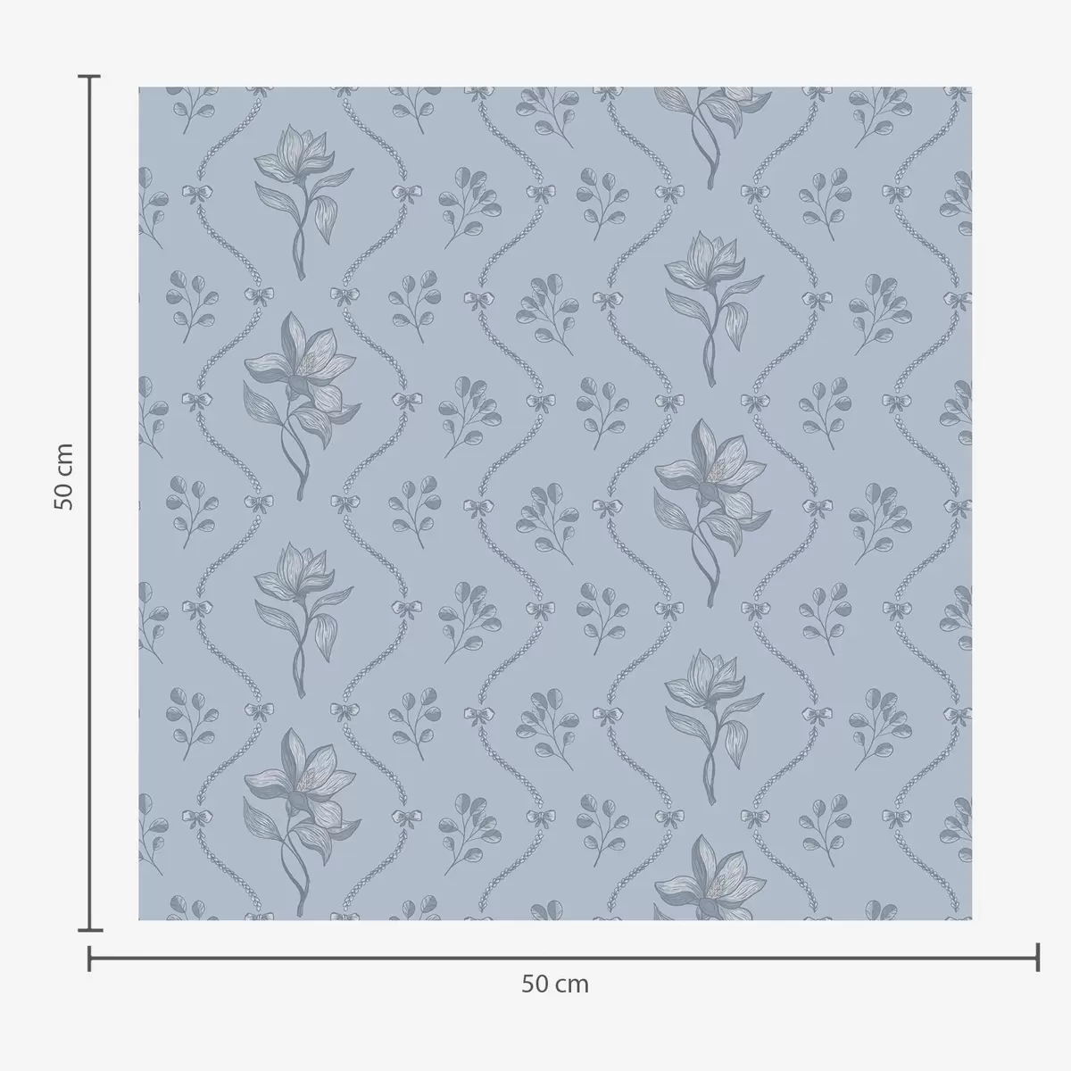 Papel pintado Pequeñas flores y cintas en tonos gris azulado Nr. a00808v2