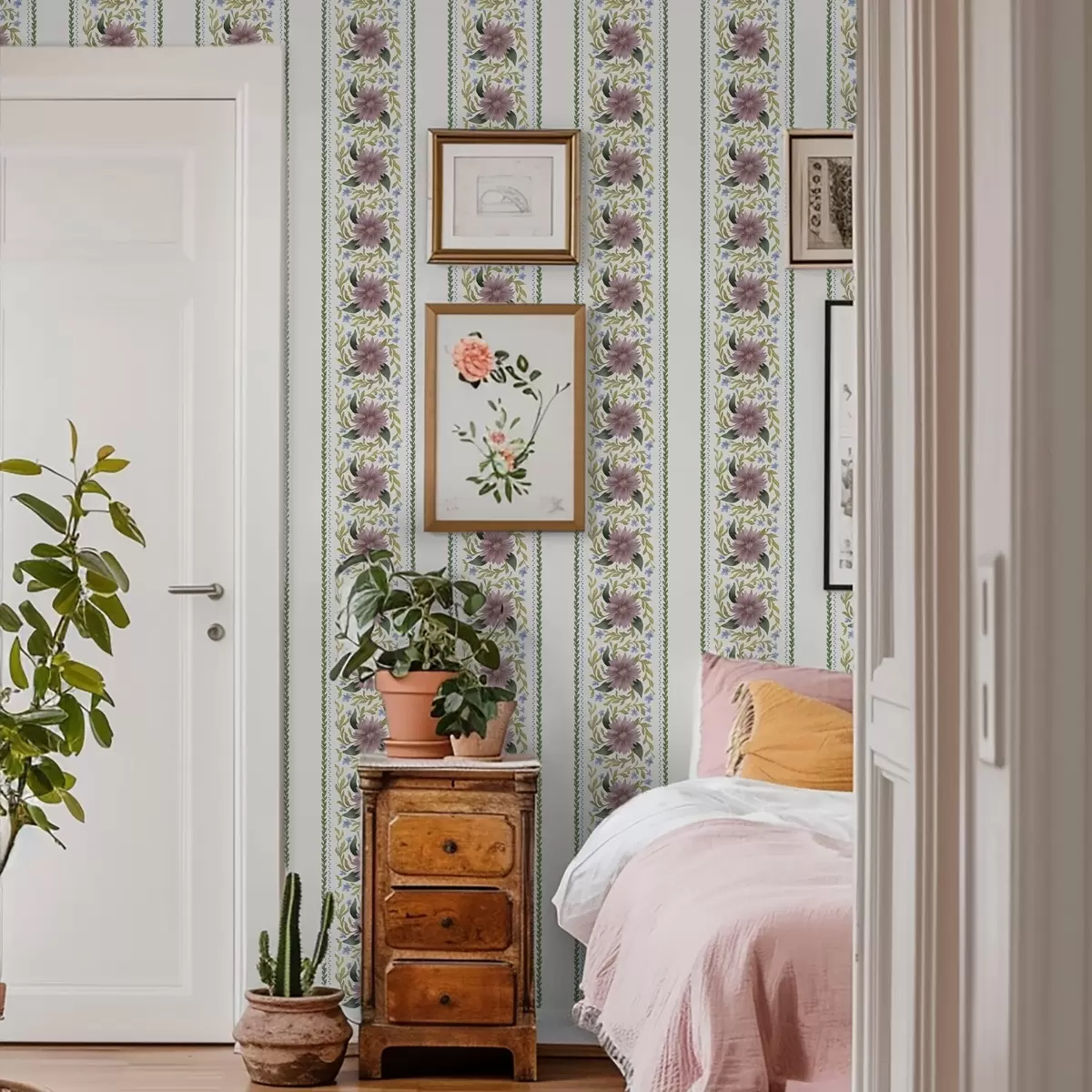 Papel pintado Rayas florales verticales en tonos azul lila Nr. a00809