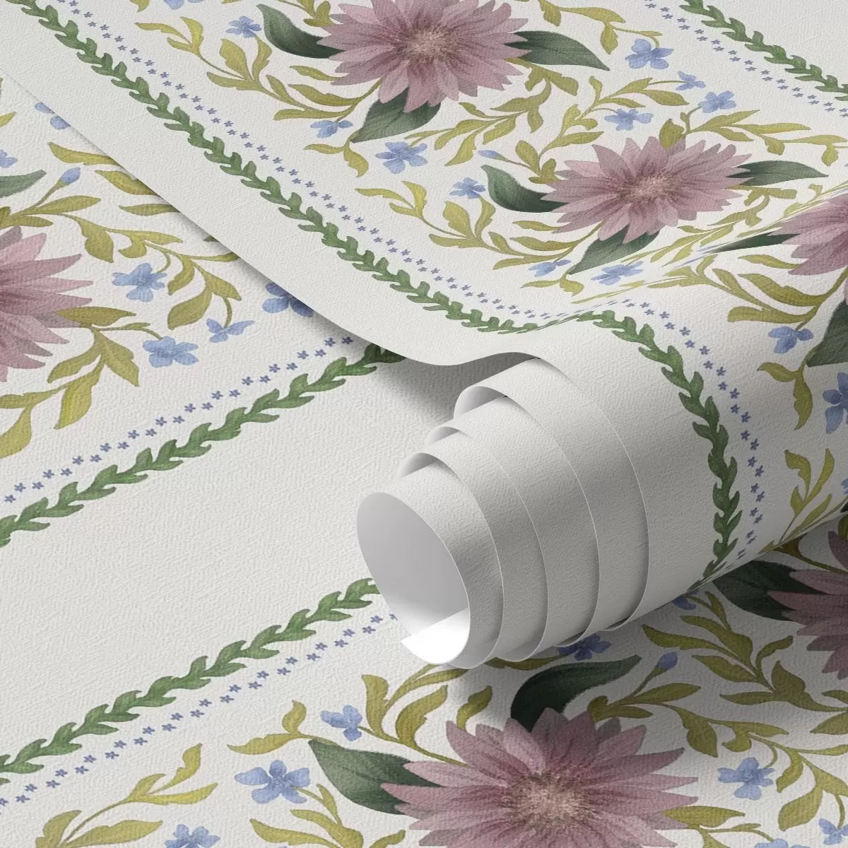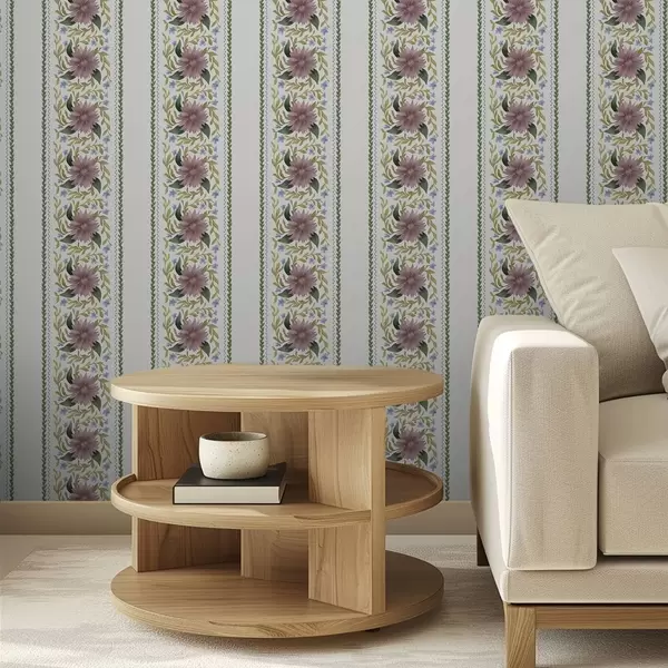 Papel pintado Rayas florales verticales en tonos azul lila Nr. a00809