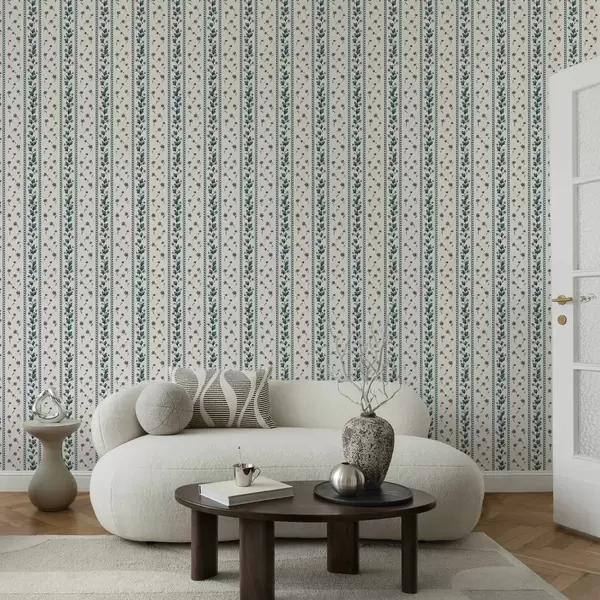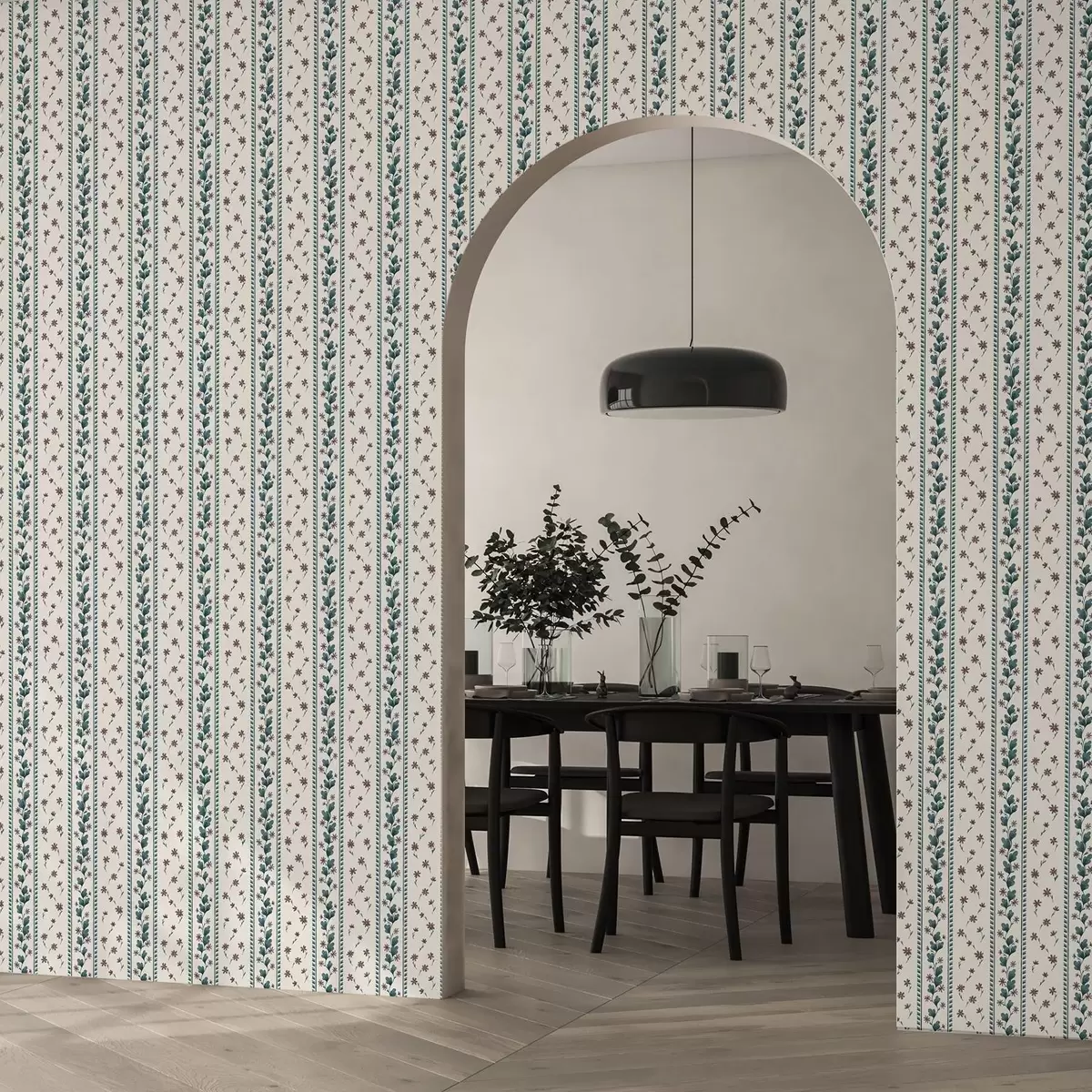 Papel pintado Rayas florales verticales en tonos azul y marrón Nr. a00811