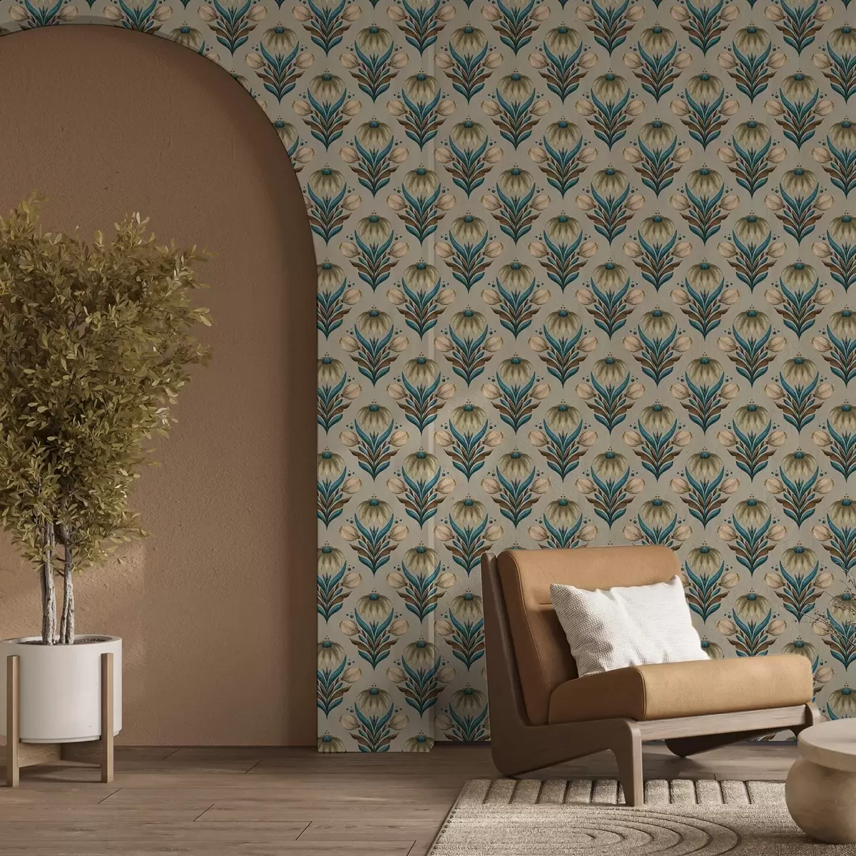 Papel pintado Adorno floral simétrico en tonos cálidos Nr. a00812