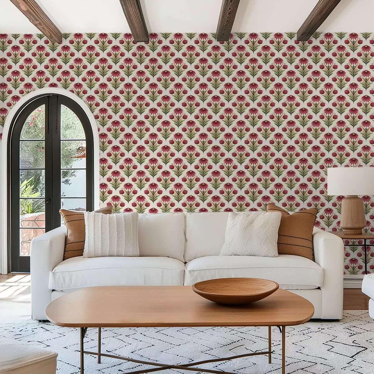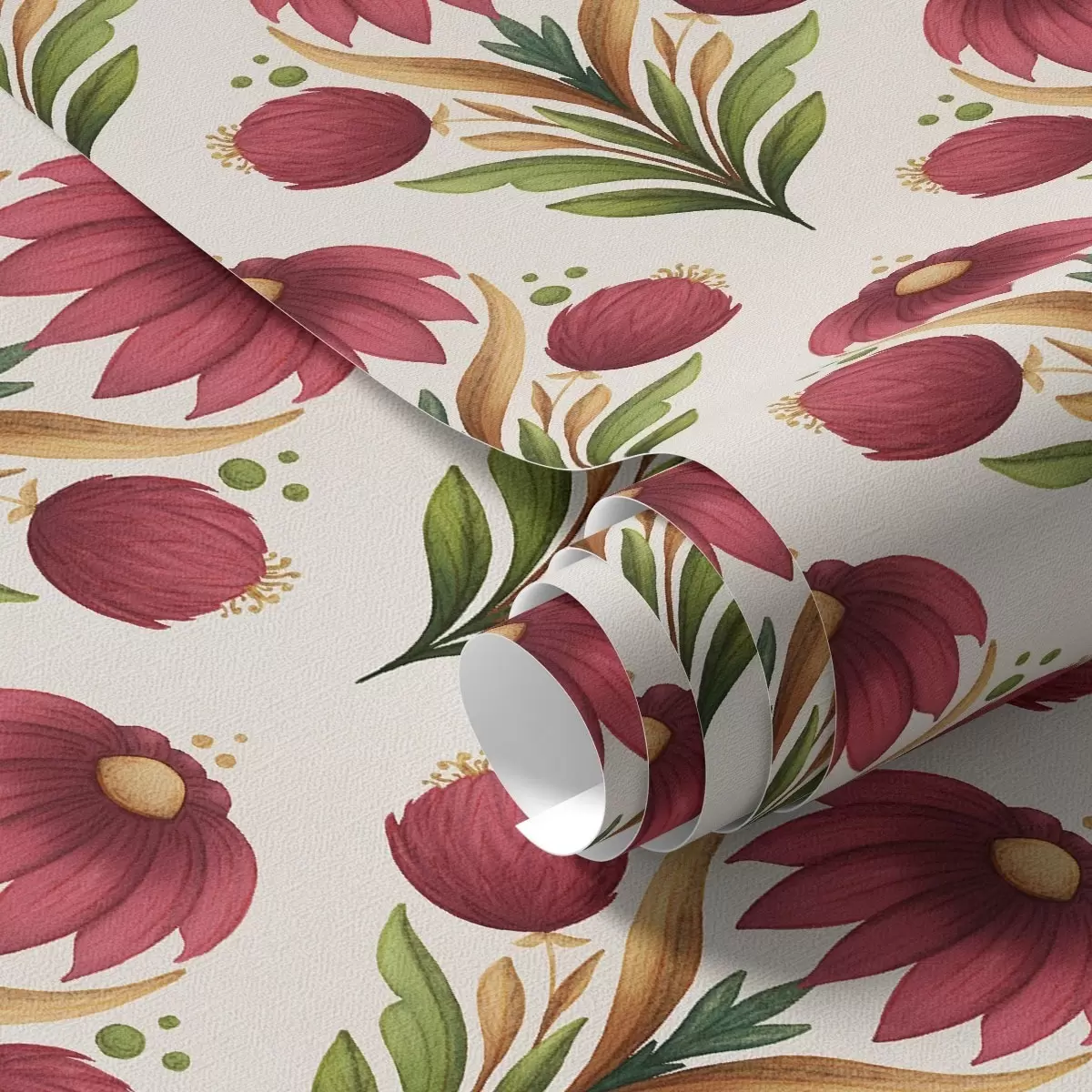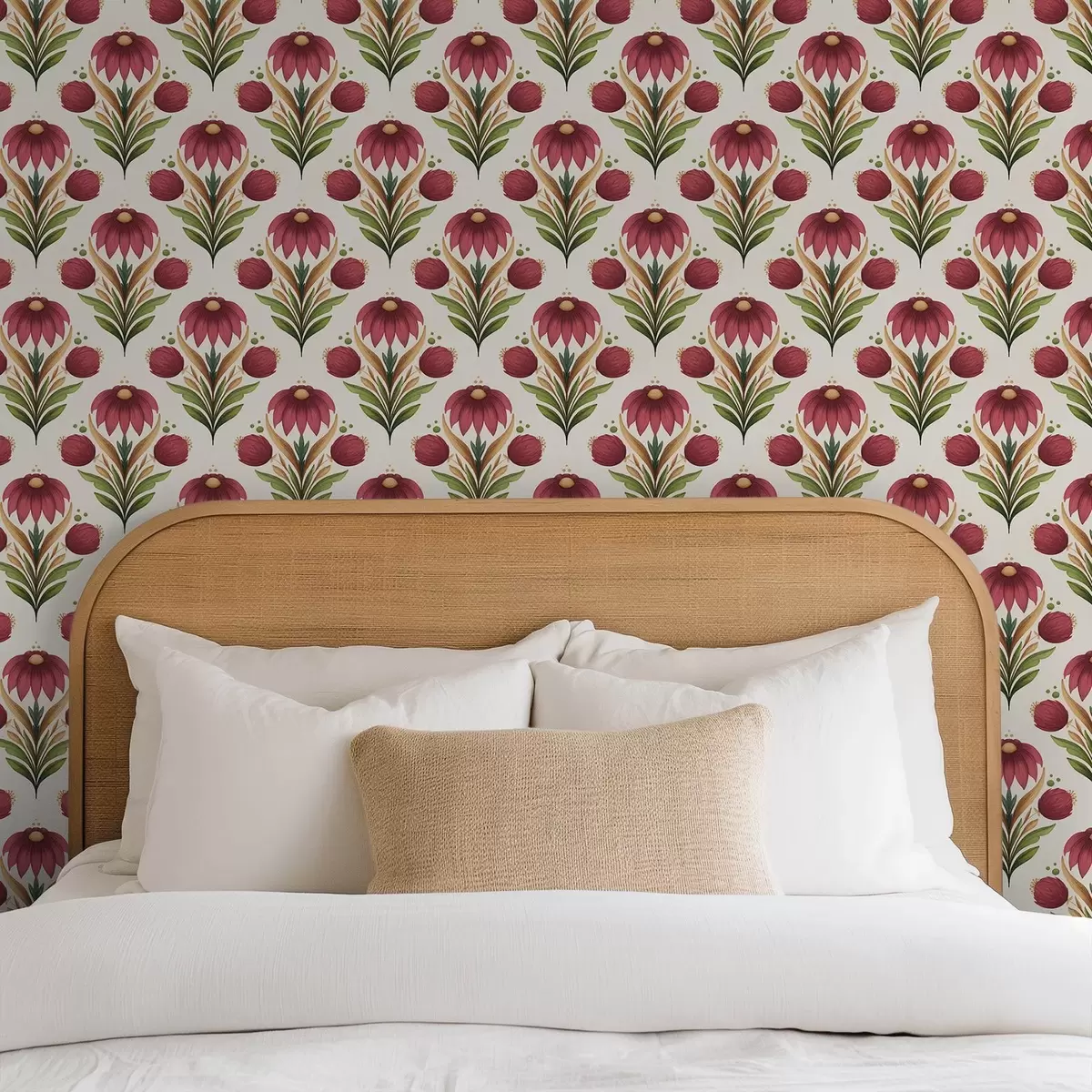 Papel pintado Adorno floral simétrico en intensos tonos rojos y verdes Nr. a00812v4