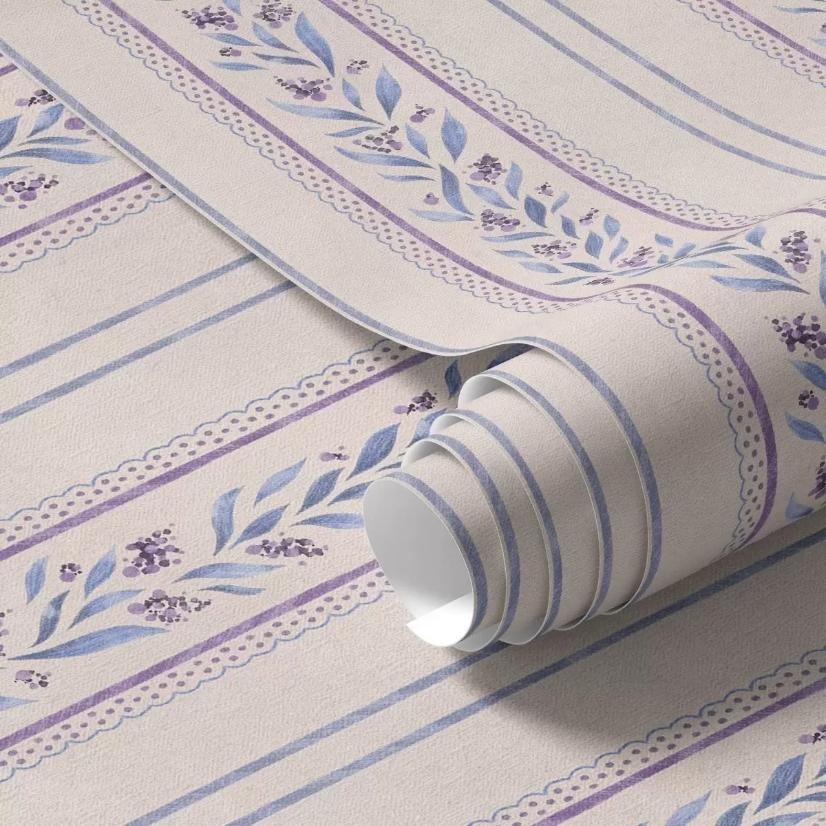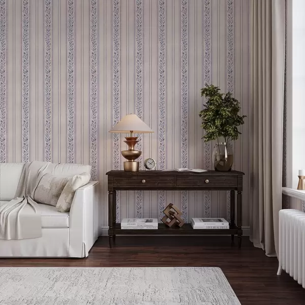 Papel pintado Rayas verticales con viñetas lavanda, beige cálido Nr. a00813