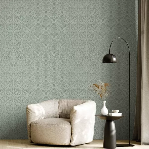 Papel pintado Lacy dispara sobre un fondo verde pastel, con una suave profundidad. a00815v3