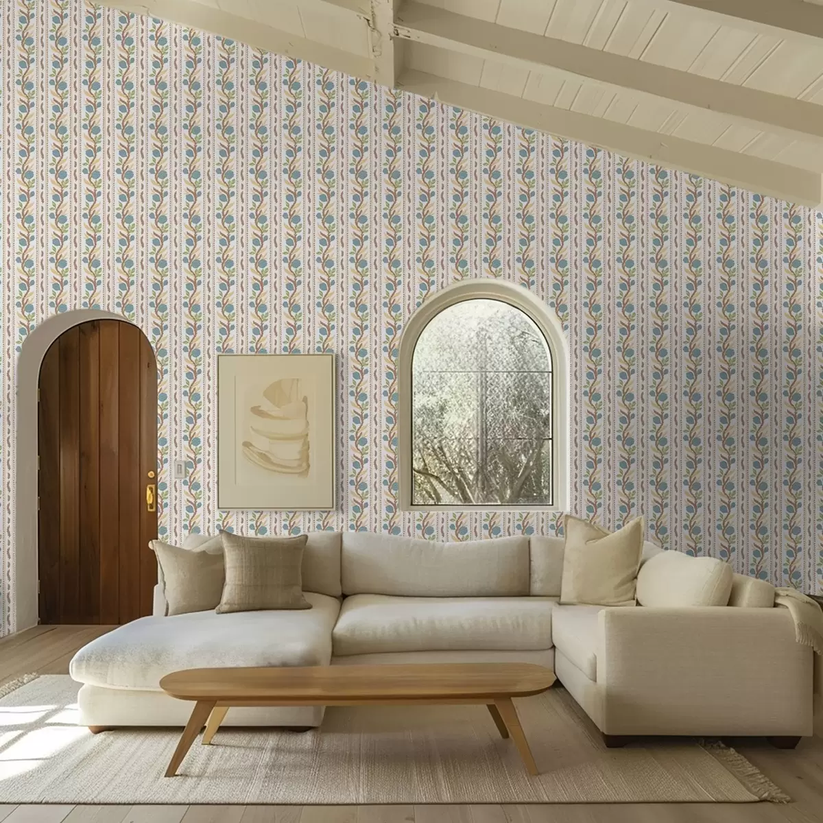 Papel pintado Rayas verticales con flores azules Nr. a00816v2