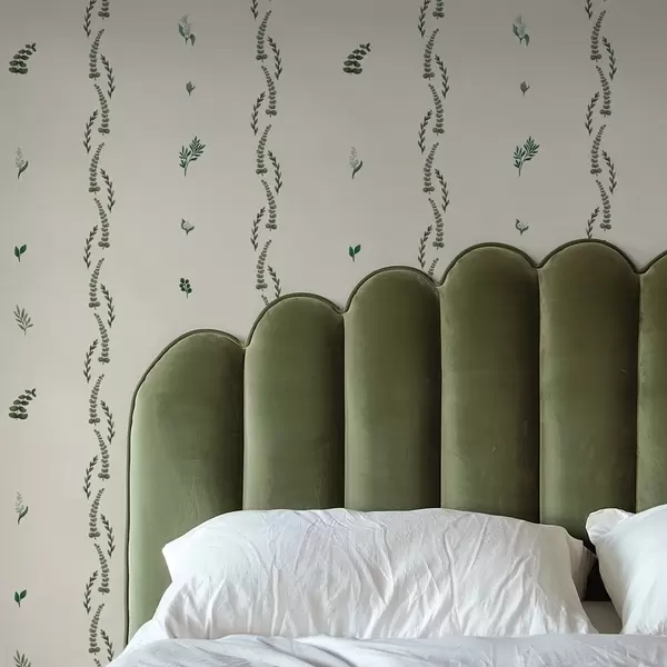Papel pintado Brotes verdes dispersos en un ritmo vertical, fondo crema. Nr. a00818