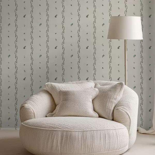 Papel pintado Brotes verdes dispersos en un ritmo vertical, fondo crema. Nr. a00818